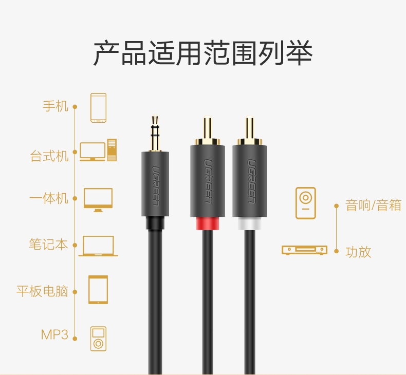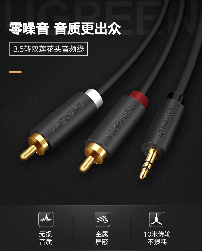 商品名称:绿联60834 1.5米3.5MM转双莲花头音频线 商品编号:ECS018301 品牌:绿联 上架时间:2024-05-28 商品毛重:0克