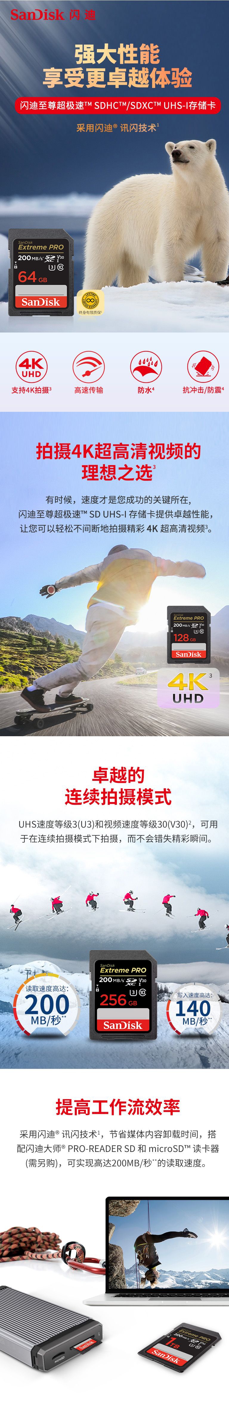 商品名称:闪迪256G SD卡 U3 V30 4K储存卡 商品编号:ECS018709 品牌:sandisk/闪迪 上架时间:2024-09-24 商品毛重:0克