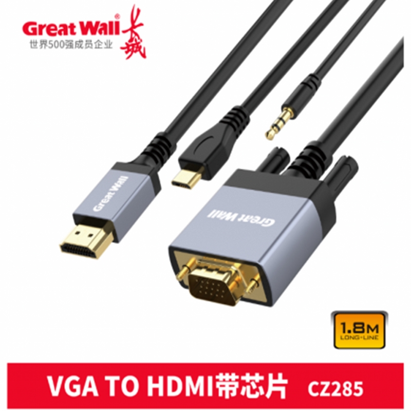 商品名称:长城CZ285 VGA转HDMI+3.5R+供电带芯片 铝合金款 1.8米 商品编号:ECS020213 品牌:长城 上架时间:2025-10-07 商品毛重:0克