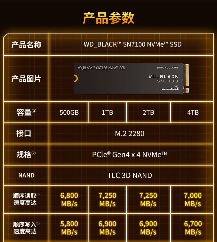 商品名称:WD西部数据 黑盘 SN7100 2T PCIE4.0 NVME M.2固态硬盘 商品编号:ECS020272 品牌:WD/西部数据 上架时间:2025-10-22 商品毛重:0克