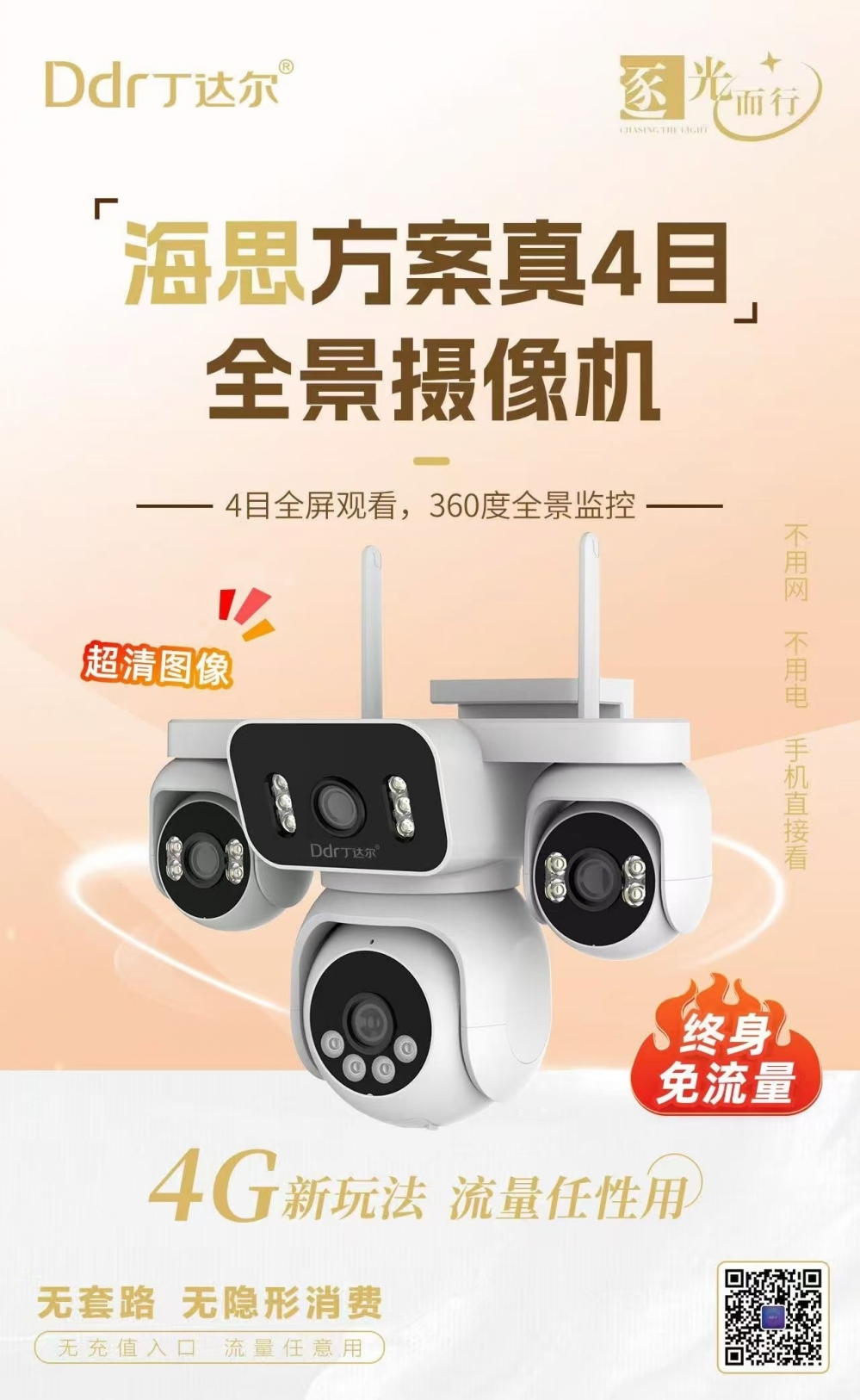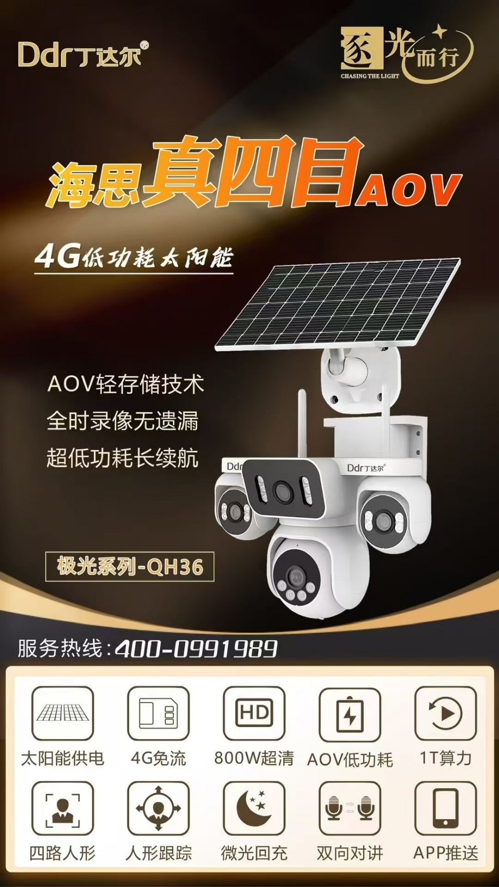 - 商品名称:Ddr丁达尔 QH-36 4G免流 6寸 四目 AOV 1.4 200万双光 太阳能板电池待机7-10天