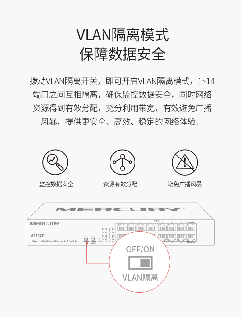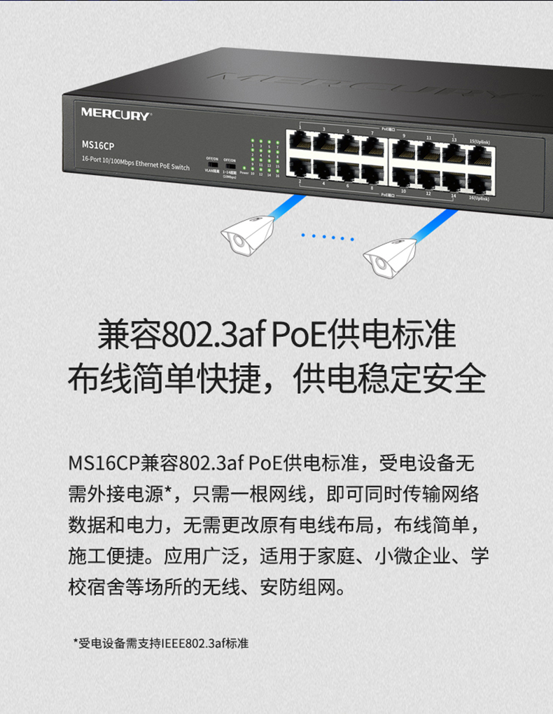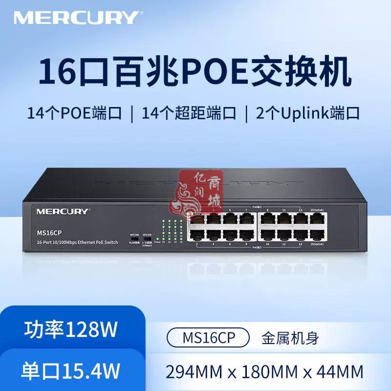 商品名称:水星MS16CP 16口百兆监控专用PoE交换机 商品编号:ECS020318 品牌:水星 上架时间:2025-11-19 商品毛重:0克