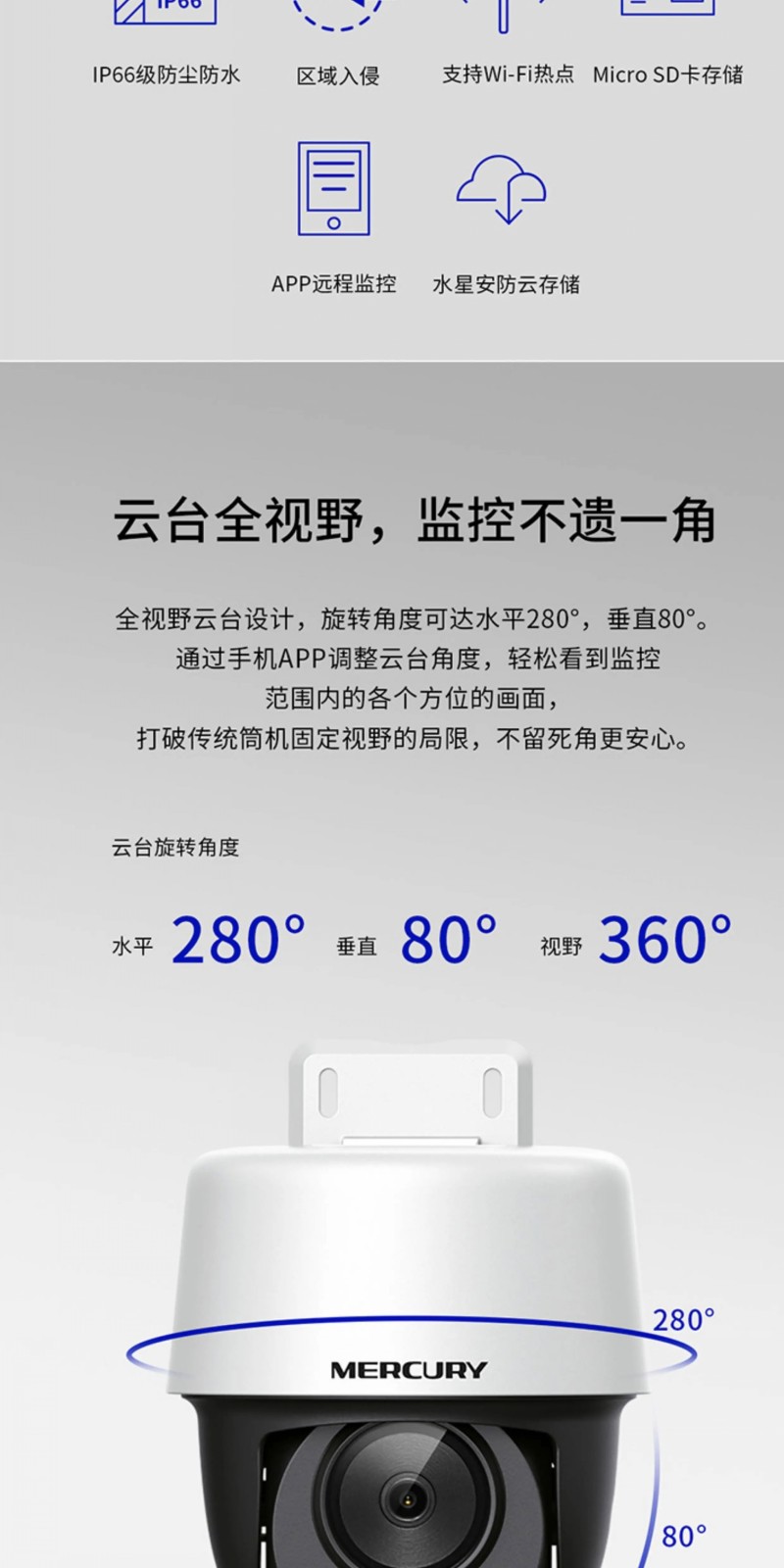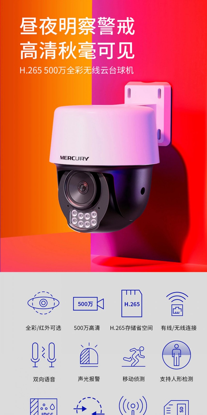 商品名称:水星MIPC5286W-4 球机 500W 全彩室外无线云台语音 4mm 商品编号:ECS020326 品牌:水星 上架时间:2025-11-23 商品毛重:0克