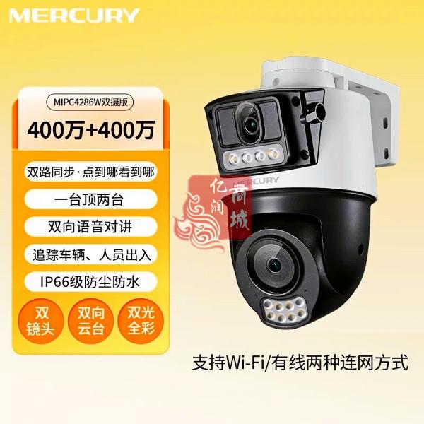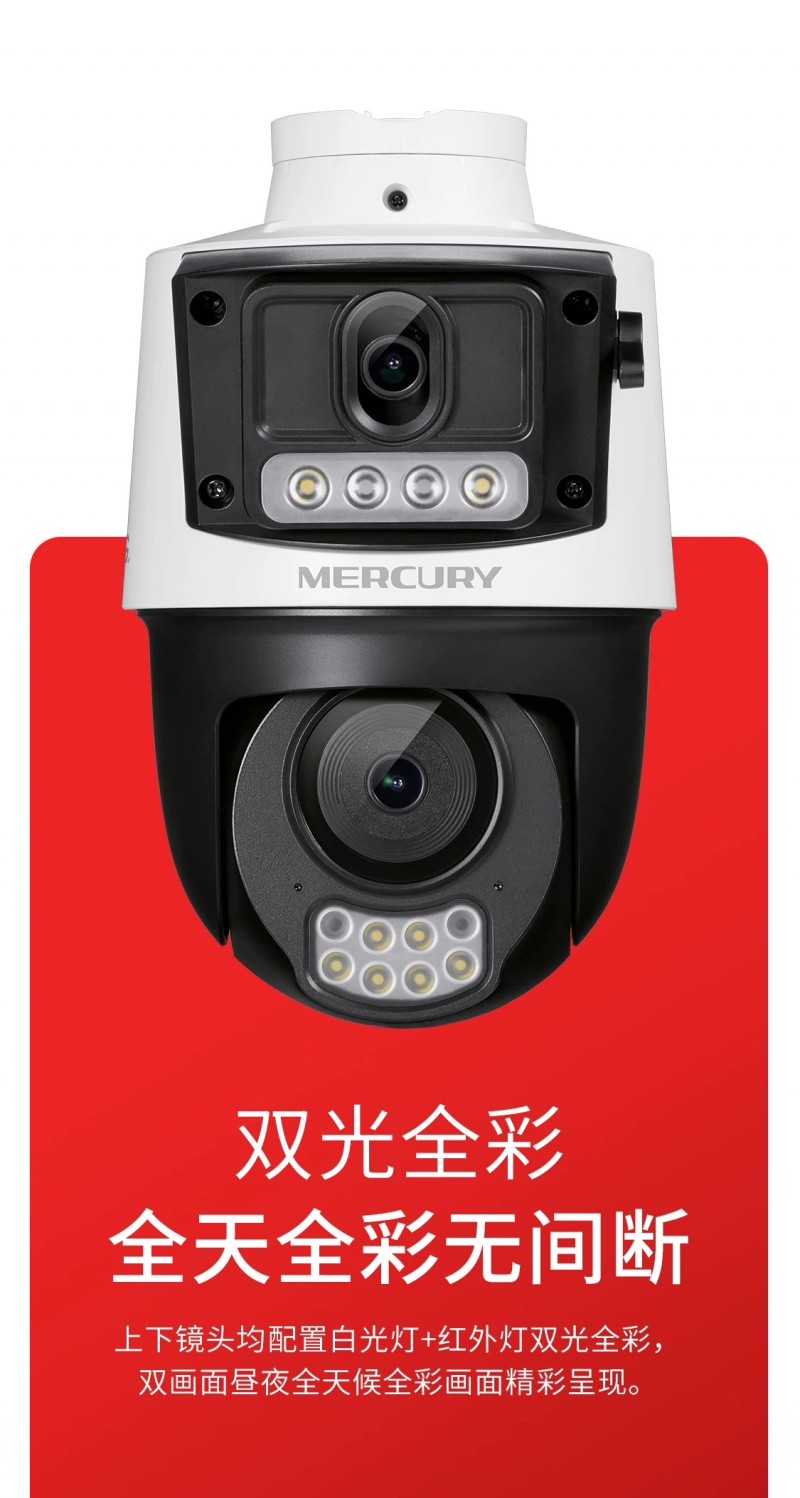 商品名称:水星 MIPC4286W(双摄版) 400万 全彩室外无线球机 4mm 商品编号:ECS020328 品牌:水星 上架时间:2025-11-23 商品毛重:0克