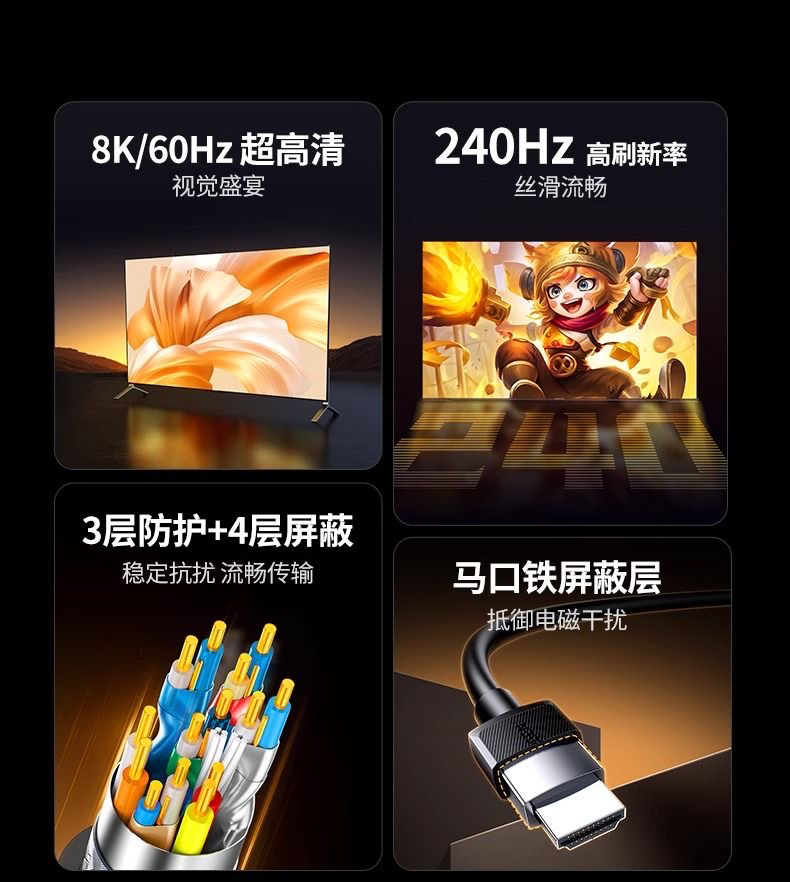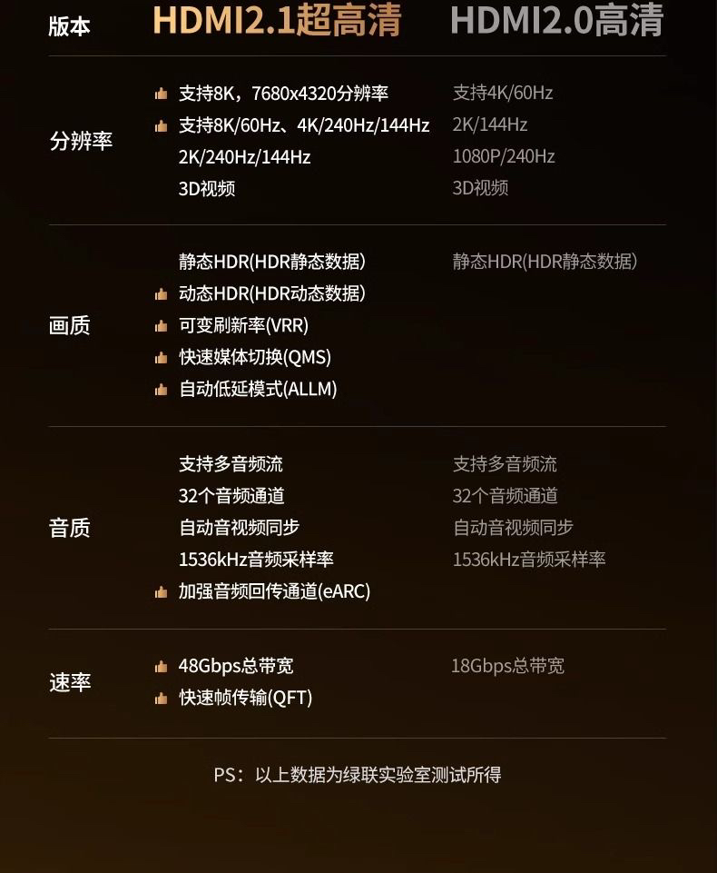 商品名称:绿联 45431 2.1版 1.5米 19芯胶壳240hz8K HDMI线 商品编号:ECS020333 品牌:绿联 上架时间:2025-11-25 商品毛重:0克