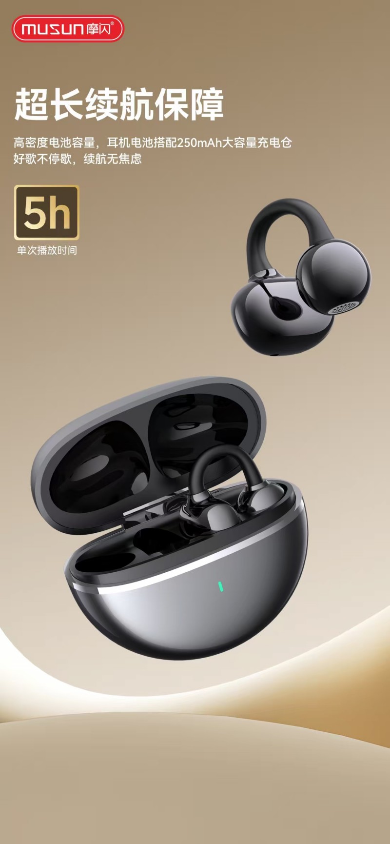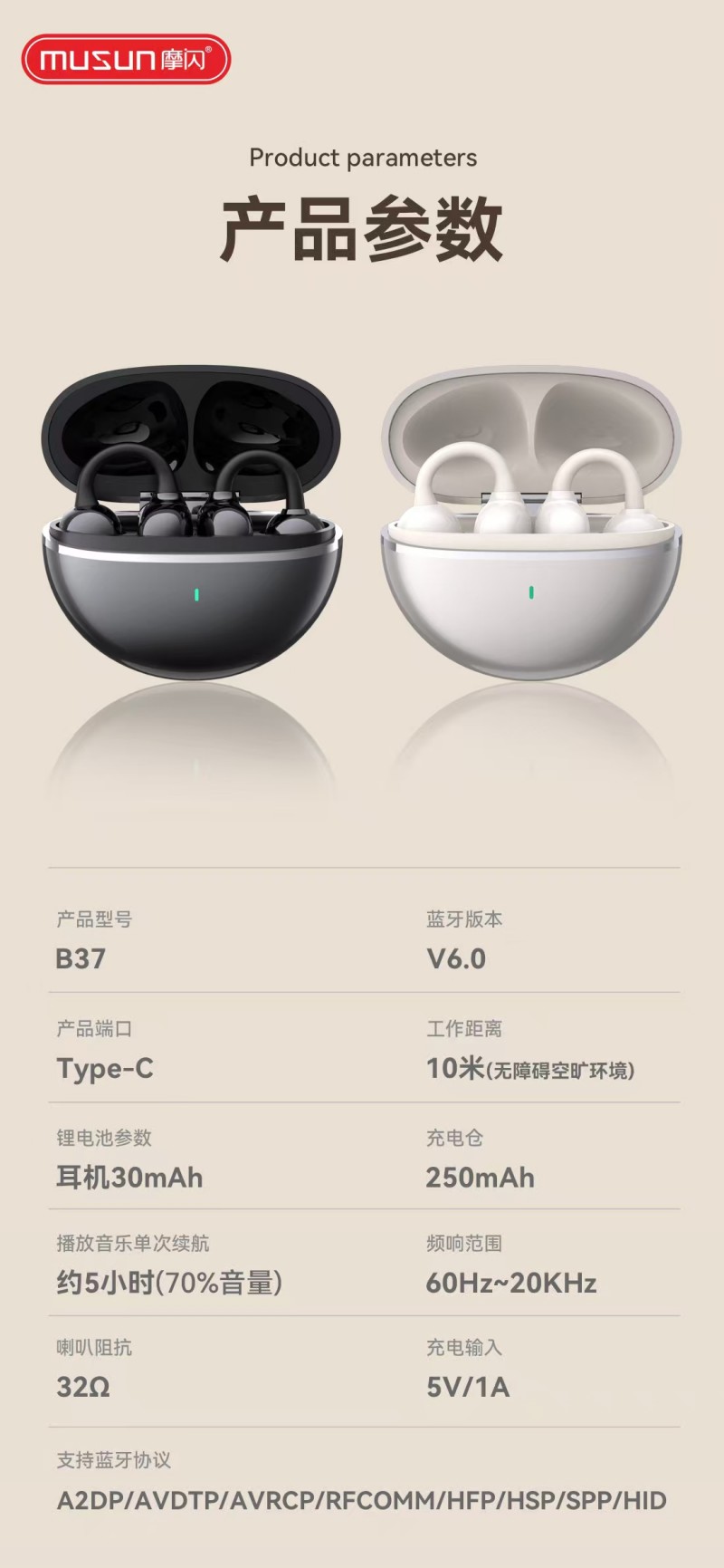 商品名称:魔闪 B37 黑色 耳夹式立体声蓝牙耳机 商品编号:ECS020397 品牌:摩闪 上架时间:2025-12-03 商品毛重:0克