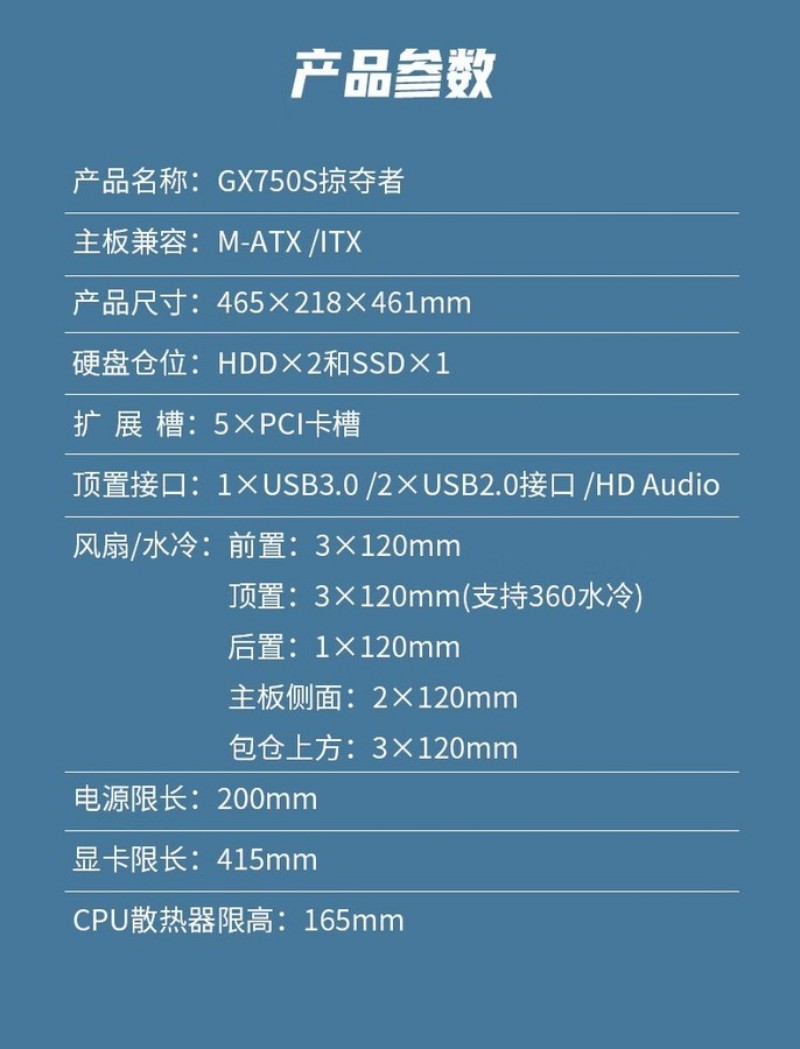 商品名称:航嘉 GX750S掠夺者 白色 M-ATX侧透水冷游戏机箱 商品编号:ECS020450 品牌:Huntkey/航嘉 上架时间:2025-12-15 商品毛重:0克