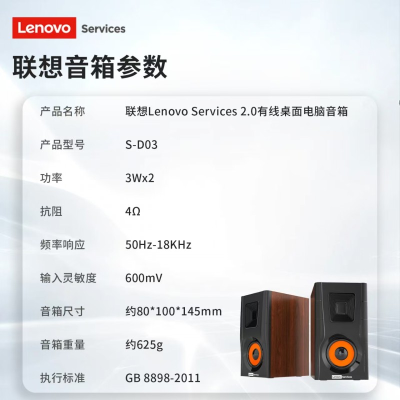 商品名称:联想Services S-D03 2.0有线桌面电脑音箱 商品编号:ECS020468 品牌:联想 上架时间:2025-12-27 商品毛重:0克