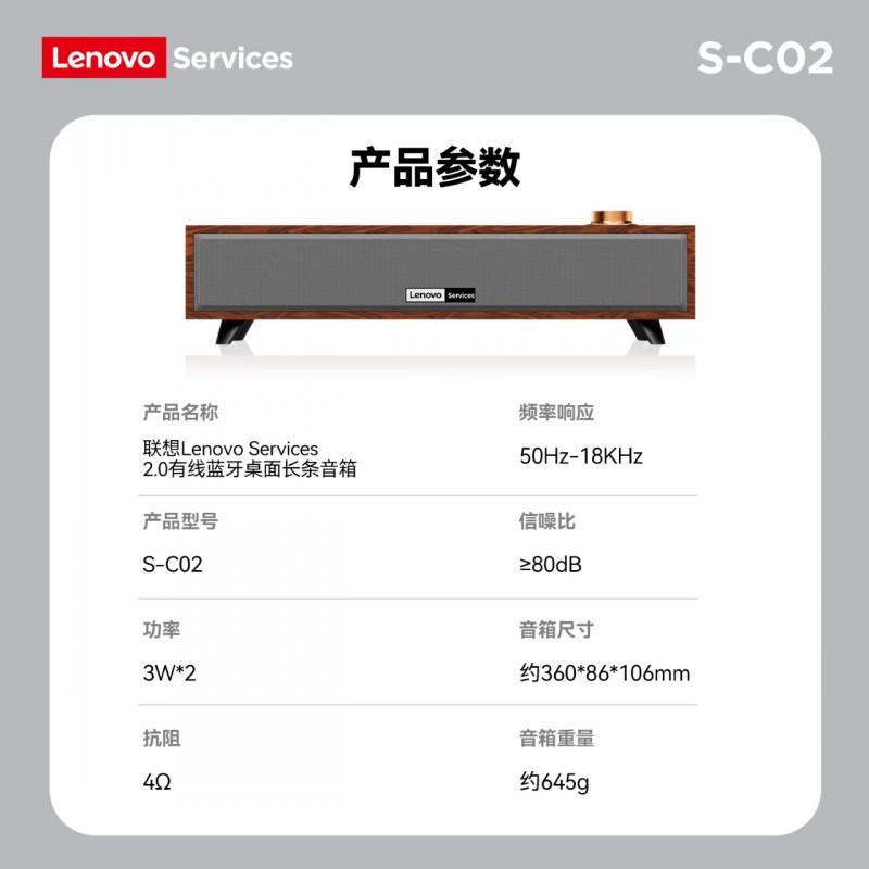 商品名称:联想Services S-C02 2.0有线蓝牙桌面电脑长条音箱 商品编号:ECS020470 品牌:联想 上架时间:2025-12-27 商品毛重:0克
