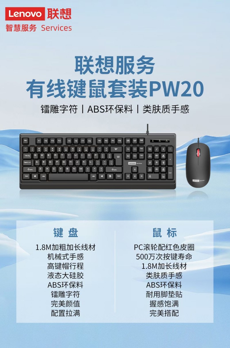 商品名称:联想Services【PW20】有线键鼠套装 商品编号:ECS020479 品牌:联想 上架时间:2026-01-04 商品毛重:0克