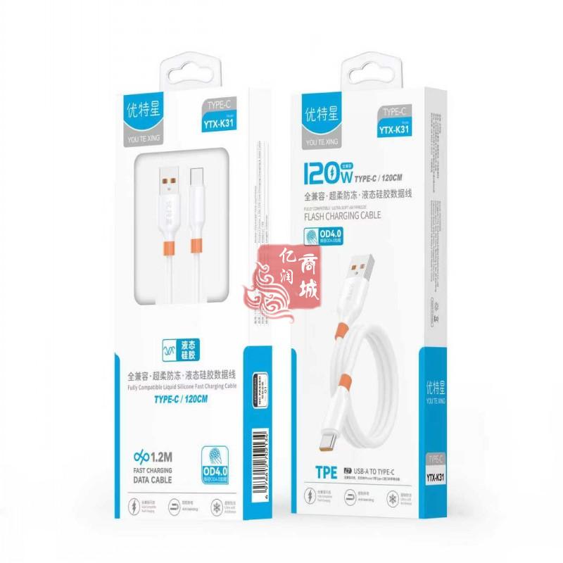 商品名称:优特星 K31 120W type-c全兼容液态硅胶数据线 商品编号:ECS020484 品牌:优特星 上架时间:2026-01-10 商品毛重:0克
