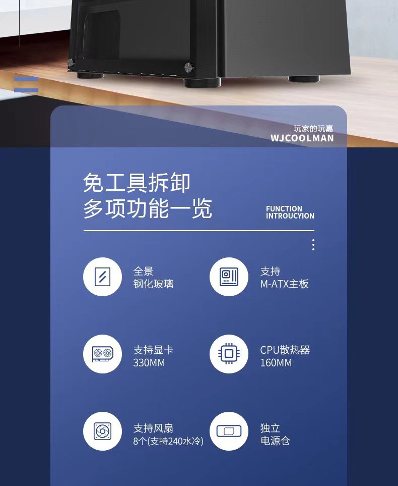 商品名称:玩嘉 光遇 黑色 240水冷M-ATX中小机箱玻璃侧透游戏机箱 商品编号:ECS020487 品牌:玩嘉 上架时间:2026-01-12 商品毛重:0克