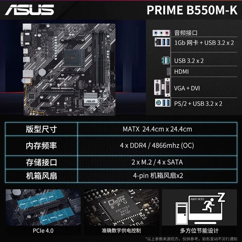 商品名称:华硕 PRIME B550M-K 主板 商品编号:ECS020502 品牌:ASUS/华硕 上架时间:2026-01-27 商品毛重:0克