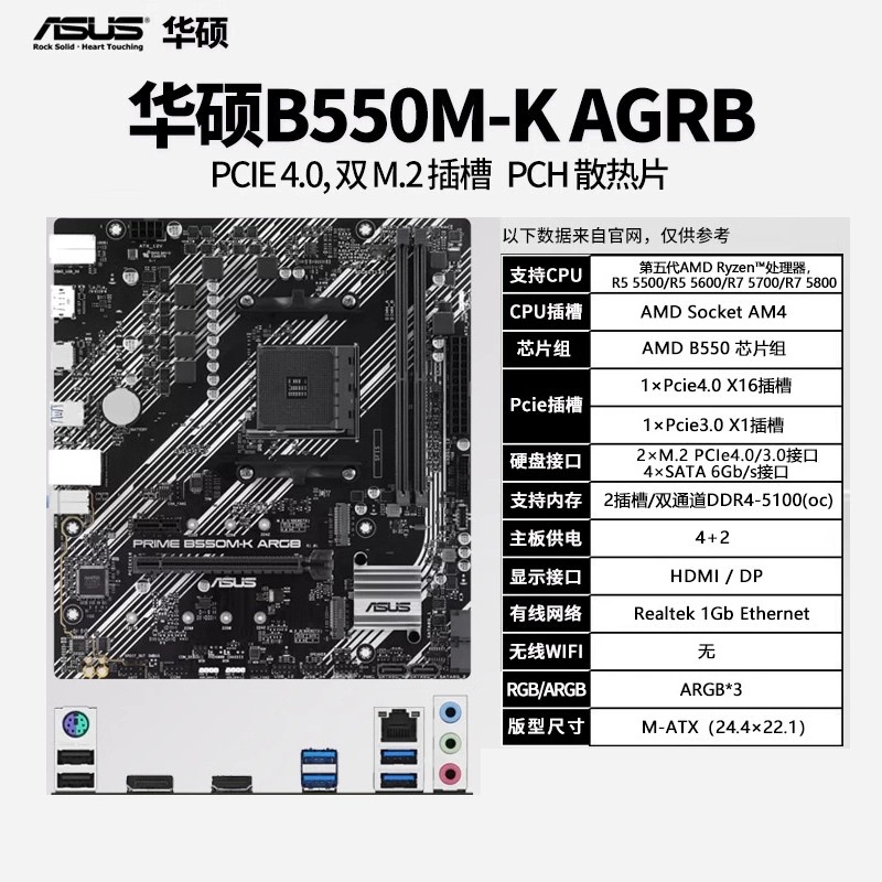 商品名称:华硕 PRIME B550M-K ARGB 主板 商品编号:ECS020503 品牌:ASUS/华硕 上架时间:2026-01-27 商品毛重:0克