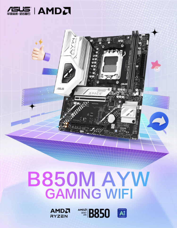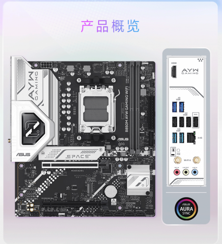 商品名称:华硕 B850M AYW GAMING WIFI D5 主板 商品编号:ECS020509 品牌:ASUS/华硕 上架时间:2026-01-27 商品毛重:0克