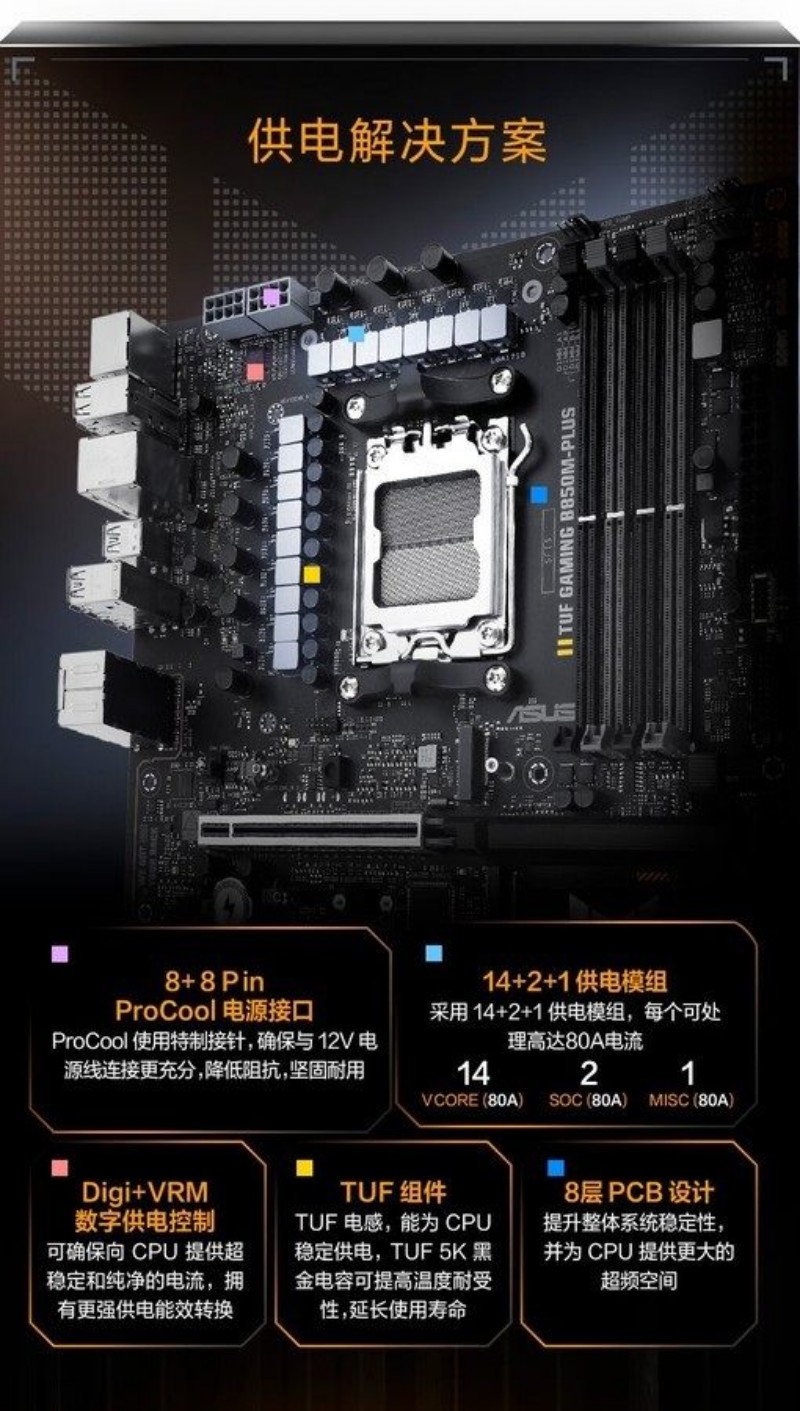商品名称:华硕 TUF GAMING B850M-PLUS D5 主板 商品编号:ECS020511 品牌:ASUS/华硕 上架时间:2026-01-27 商品毛重:0克