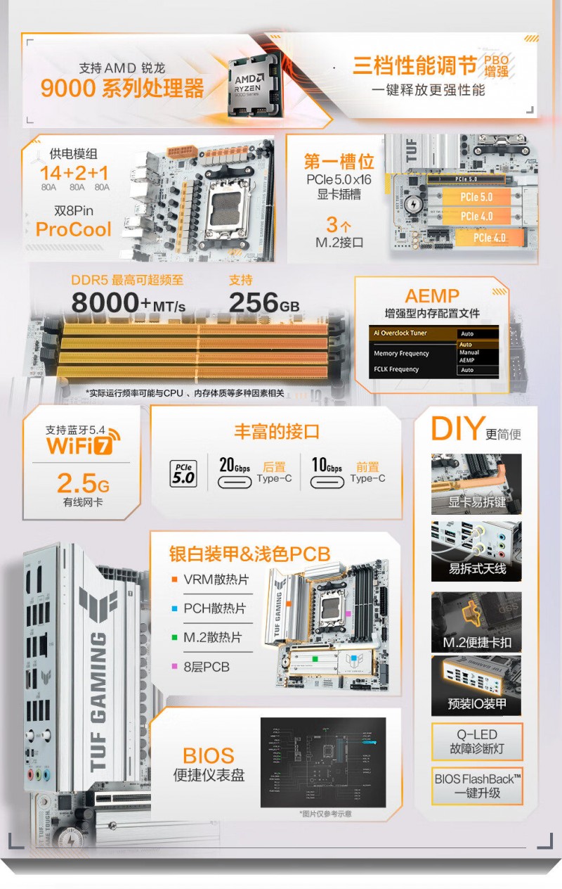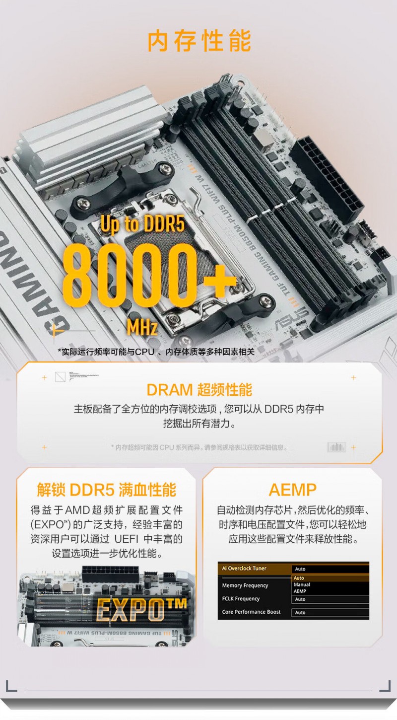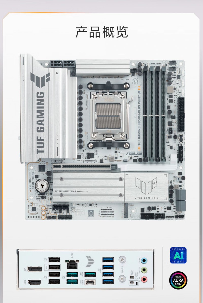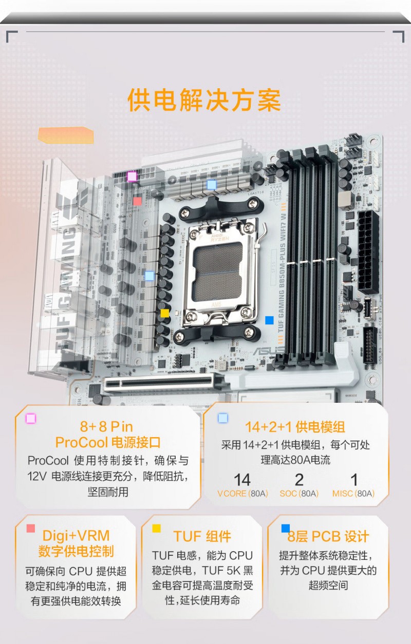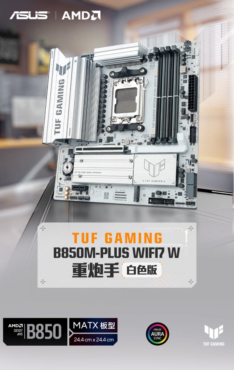 商品名称:华硕 TUF GAMING B850M-PLUS WIFI7 W D5 主板 商品编号:ECS020513 品牌:ASUS/华硕 上架时间:2026-01-27 商品毛重:0克