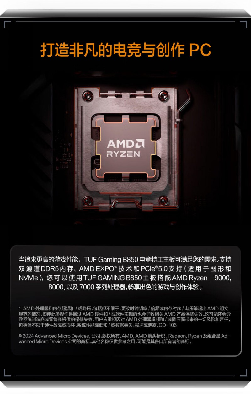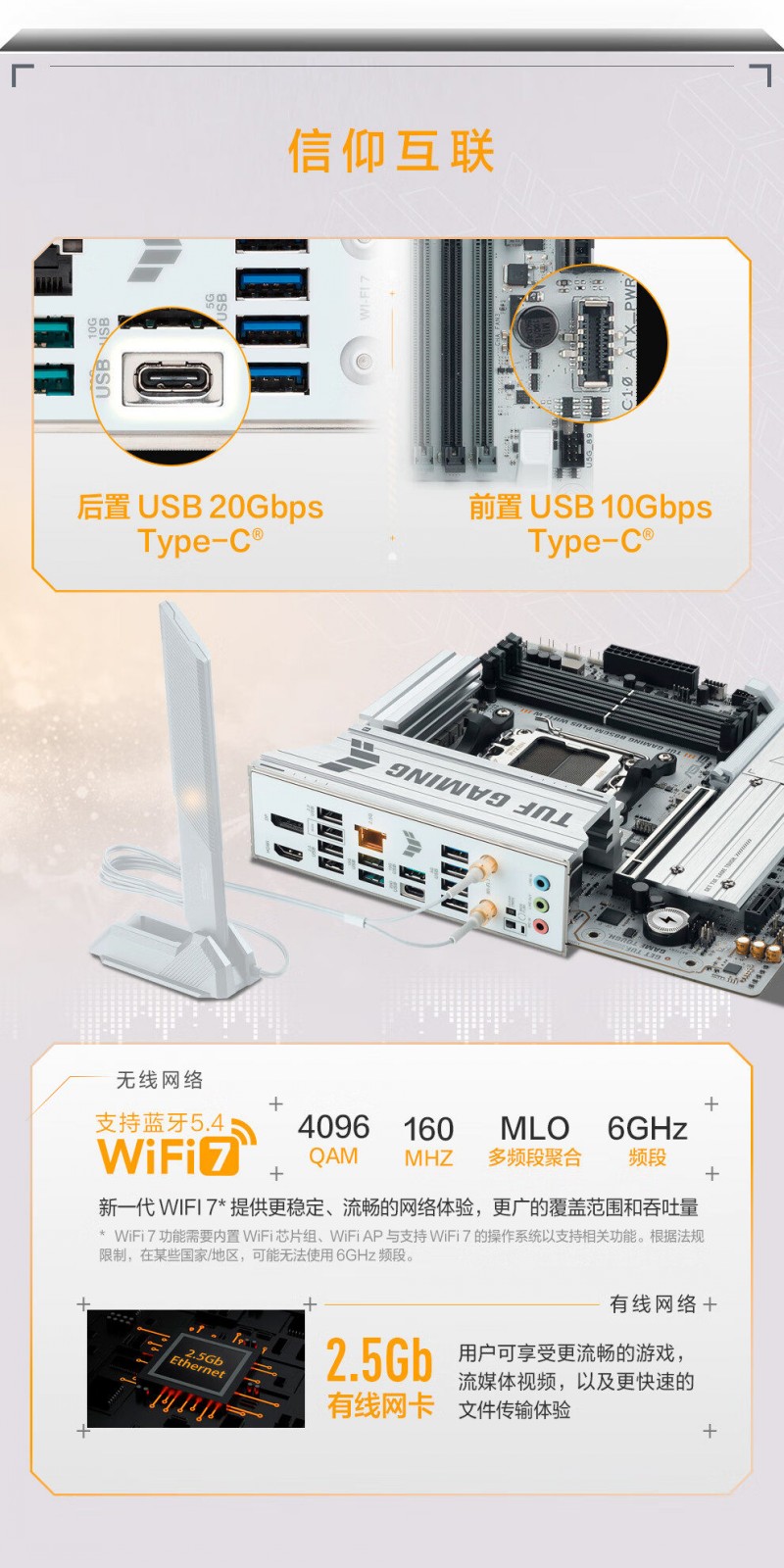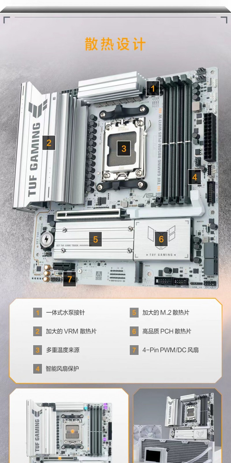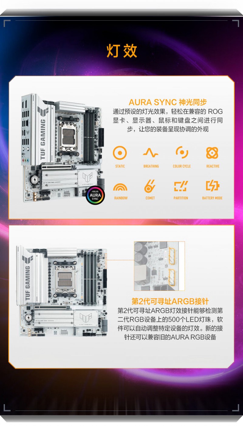 商品名称:华硕 TUF GAMING B850M-PLUS WIFI7 W D5 主板 商品编号:ECS020513 品牌:ASUS/华硕 上架时间:2026-01-27 商品毛重:0克