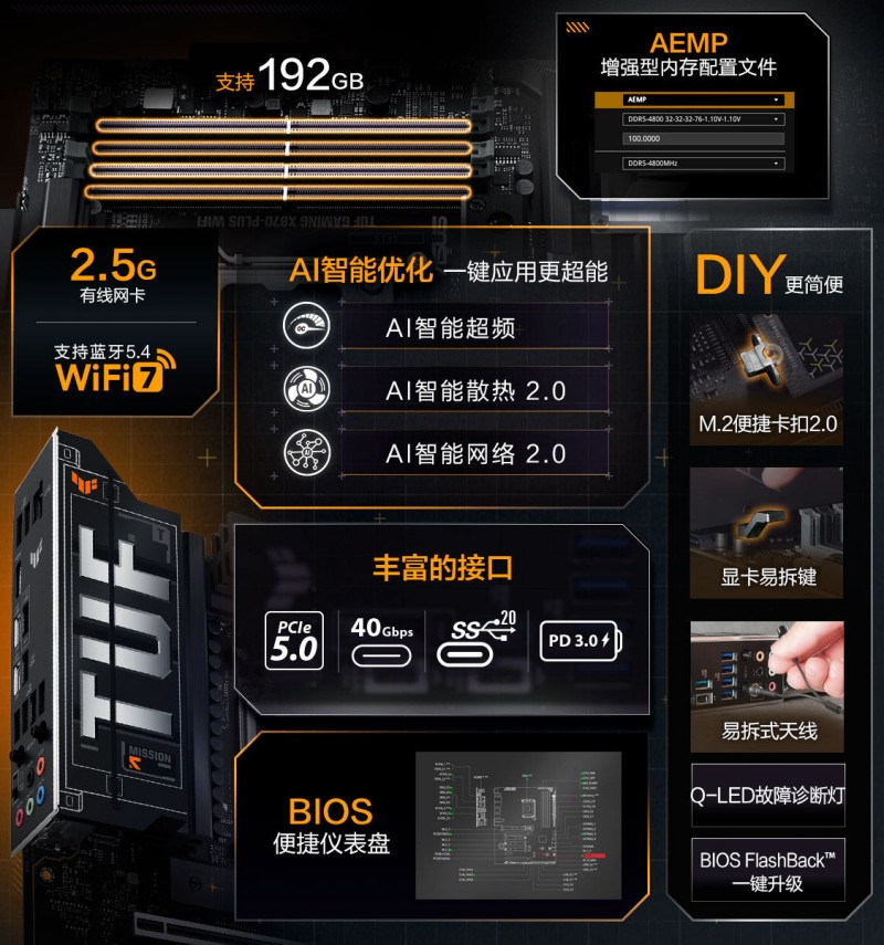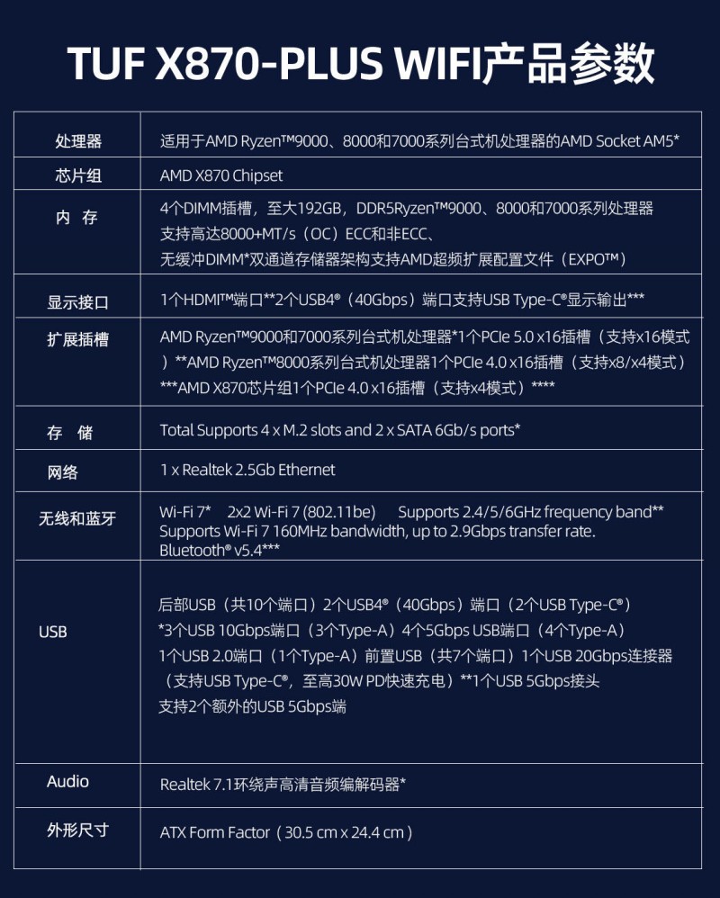 商品名称:华硕 TUF GAMING X870-PLUS WIFI D5 主板 商品编号:ECS020517 品牌:ASUS/华硕 上架时间:2026-01-27 商品毛重:0克
