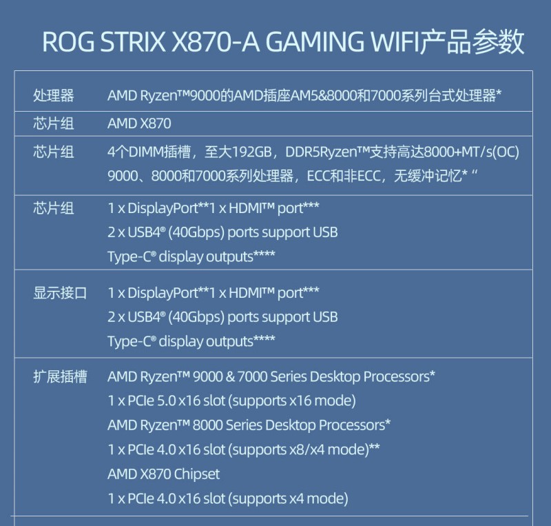 商品名称:华硕 ROG STRIX X870-A GAMING WIFI D5 主板 商品编号:ECS020518 品牌:ASUS/华硕 上架时间:2026-01-27 商品毛重:0克