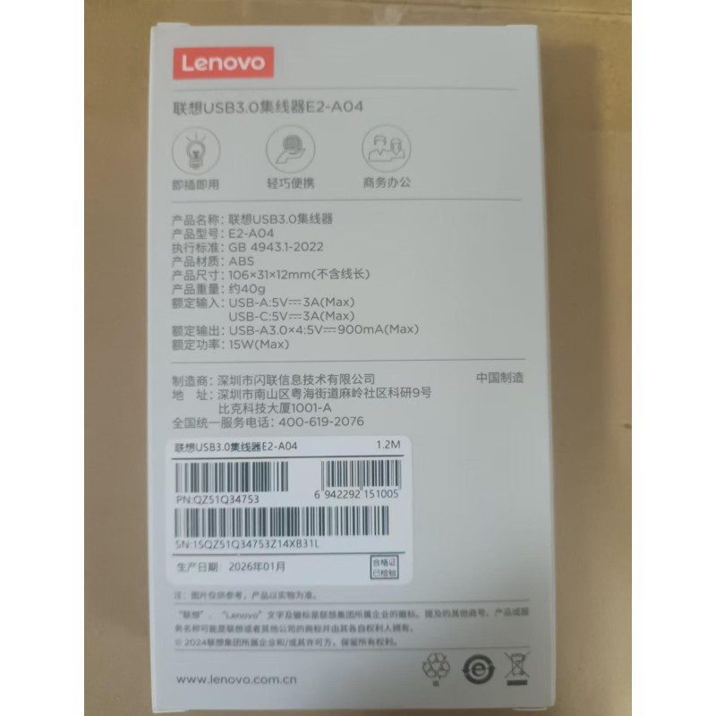 商品名称:联想 E2-A04 USB3.0四口集线器 1.2米 商品编号:ECS020533 品牌:联想 上架时间:2026-01-28 商品毛重:0克