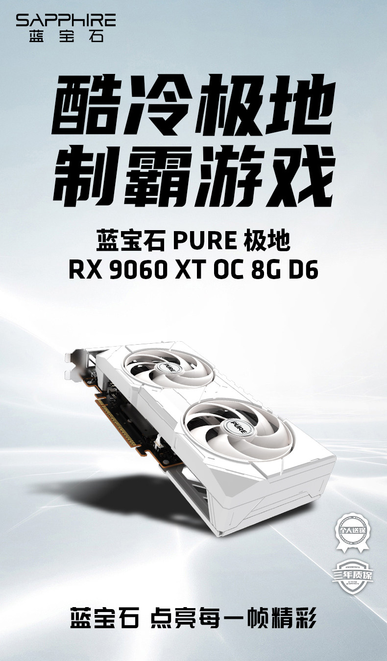 商品名称:蓝宝石 极地RX9060 XT 8G OC D6 显卡 商品编号:ECS020542 品牌:蓝宝石 上架时间:2026-01-28 商品毛重:0克
