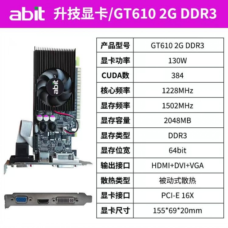 商品名称:升技 GT610 2G/D3 显卡 商品编号:ECS020555 品牌:升技 上架时间:2026-01-28 商品毛重:0克