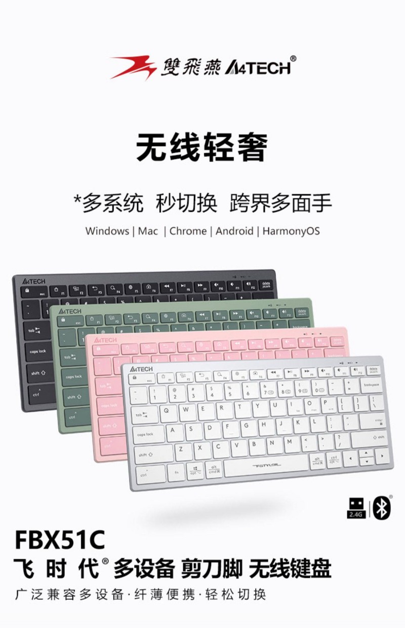 商品名称:双飞燕 FBX51C 遂空灰 无线蓝牙多模充电超薄轻便笔记本键盘 商品编号:ECS020567 品牌:双飞燕 上架时间:2026-02-03 商品毛重:0克