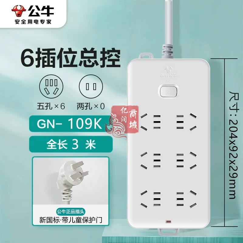 商品名称:公牛插座GN-109K带开关6孔 3米插线板 商品编号:ECS020582 品牌:公牛 上架时间:2026-02-05 商品毛重:0克