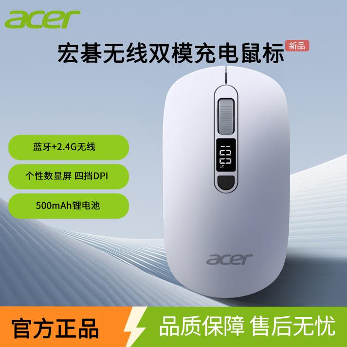 商品名称:宏基 OMR060白色丨电量显示丨无线蓝牙双模鼠标 商品编号:ECS020584 品牌:宏碁 上架时间:2026-02-06 商品毛重:0克