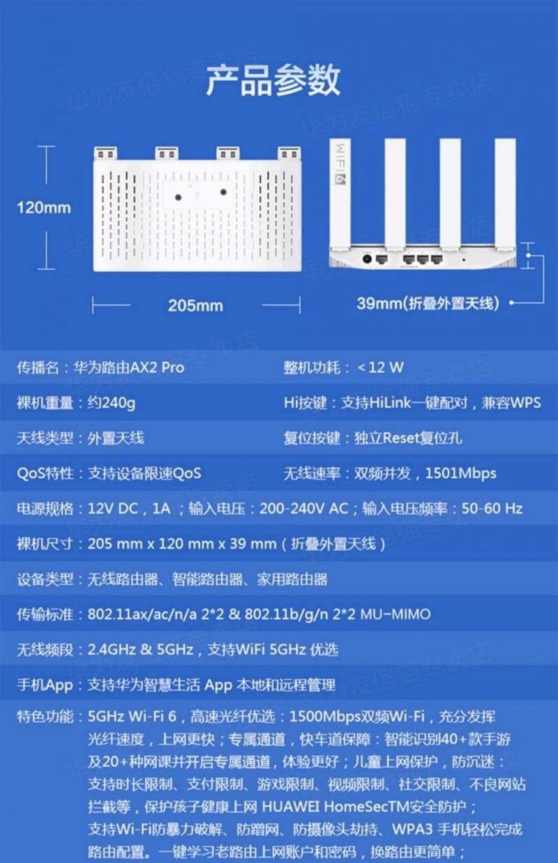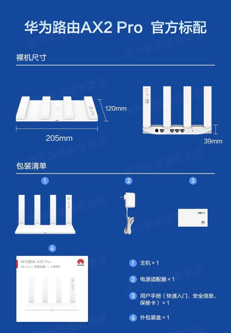 商品名称:华为AX2pro 白千兆无线5g双频Wi-Fi6路由器 商品编号:ECS020623 品牌:华为 上架时间:2026-03-03 商品毛重:0克