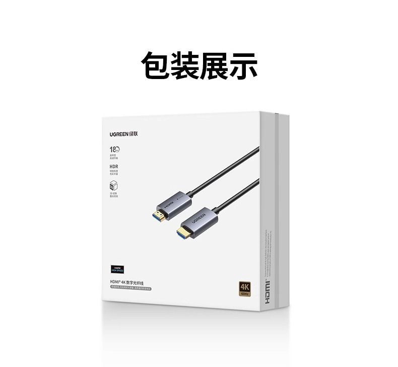 商品名称:绿联 45507 HDMI 30米 2.0版4K60Hz光纤线 铝壳款 商品编号:ECS020641 品牌:绿联 上架时间:2026-03-07 商品毛重:0克