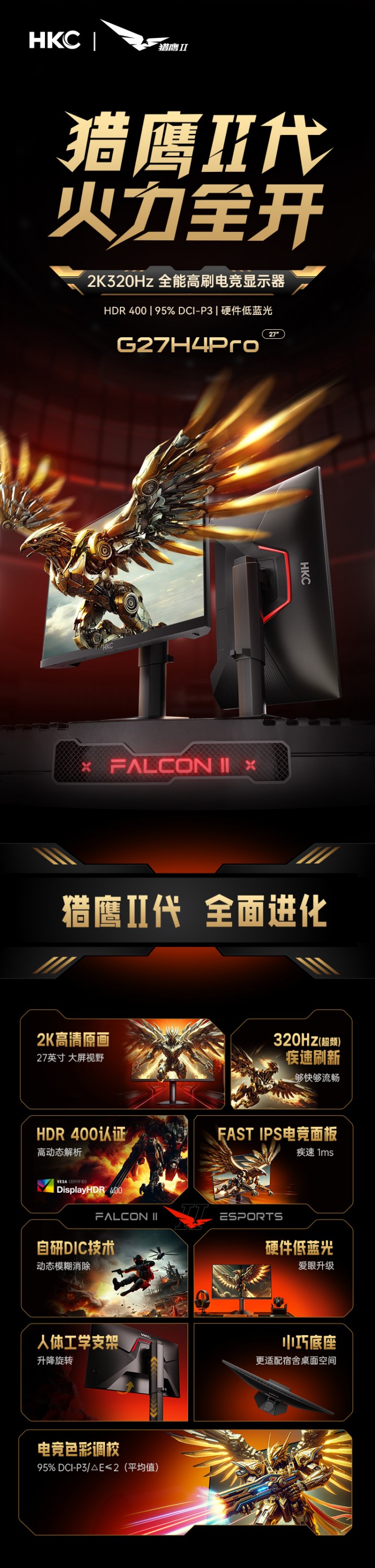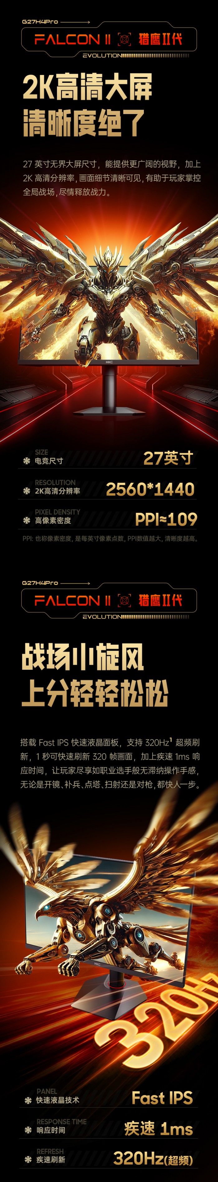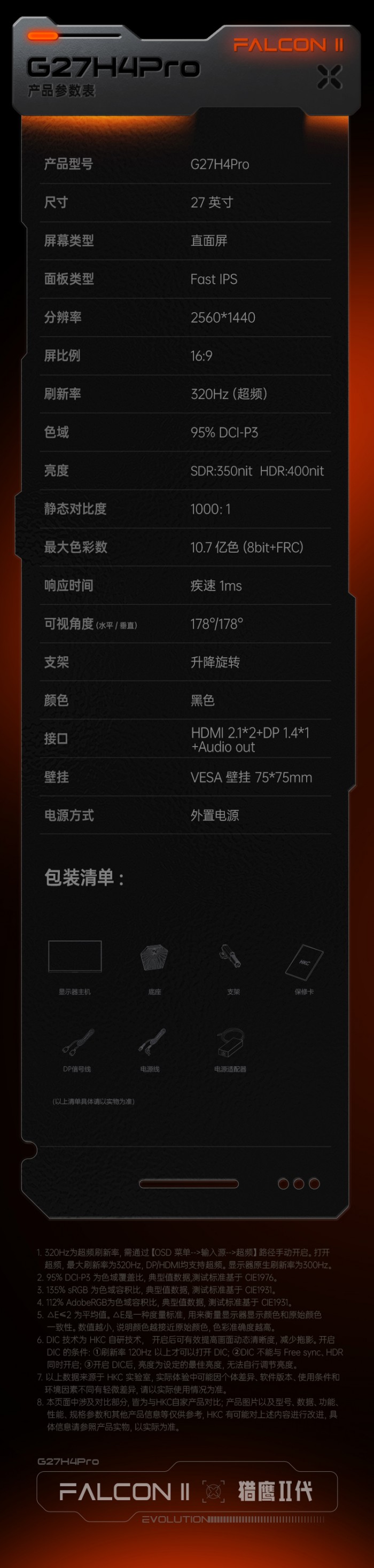 商品名称:HKC G27H4Pro 27英寸2K320Hz电竞显示器 商品编号:ECS020649 品牌:HKC/惠科 上架时间:2026-03-13 商品毛重:0克