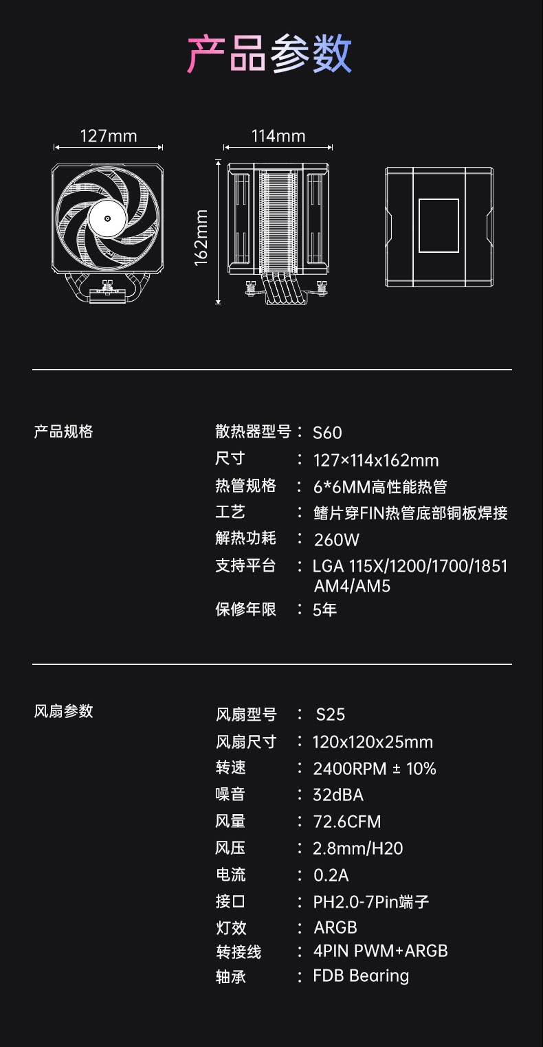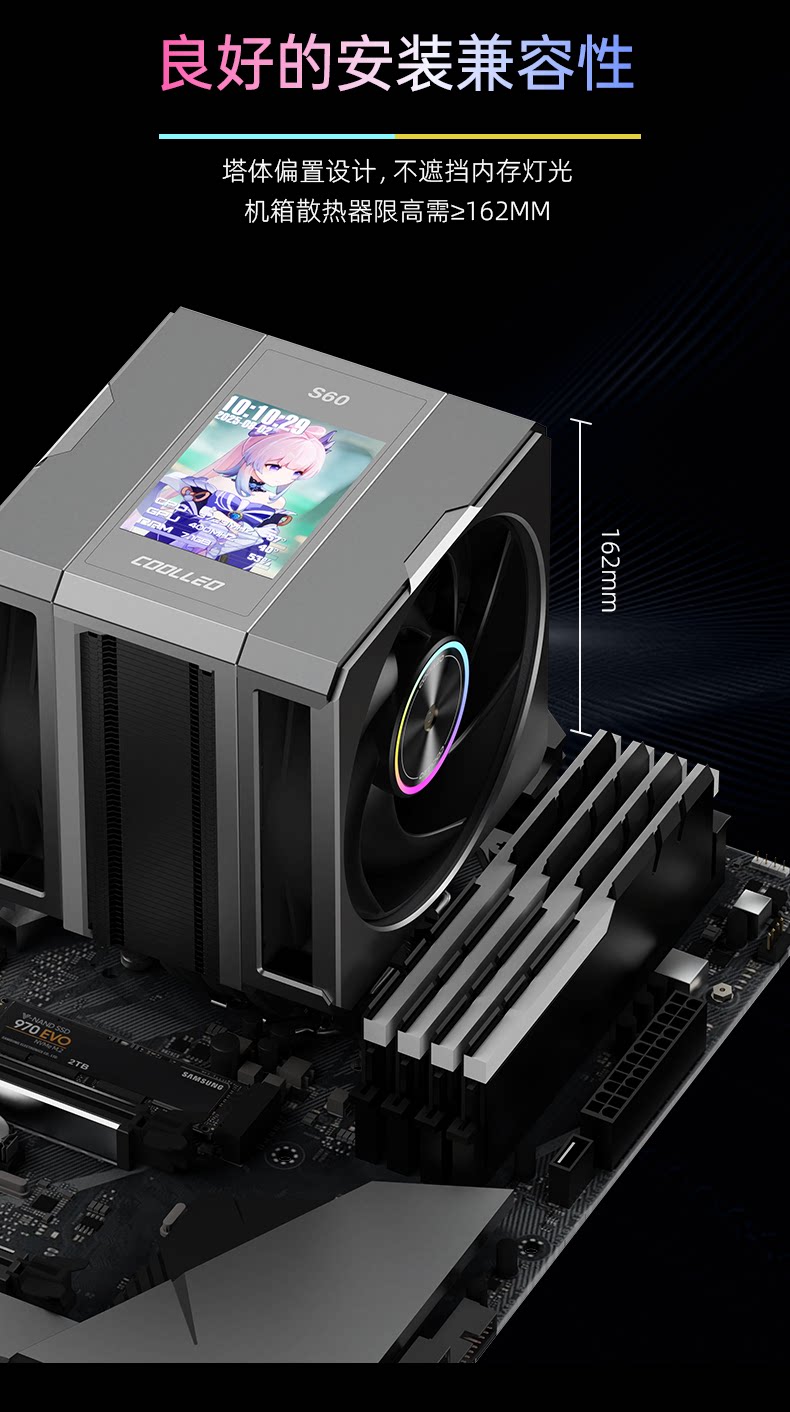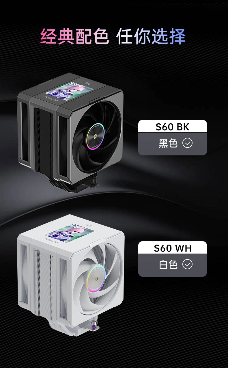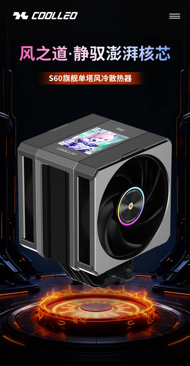 商品名称:酷里奥S60 黑色 单塔双风扇2.8吋IPS显示屏显 6热管风冷风扇 商品编号:ECS020661 品牌:酷里奥 上架时间:2026-03-16 商品毛重:0克