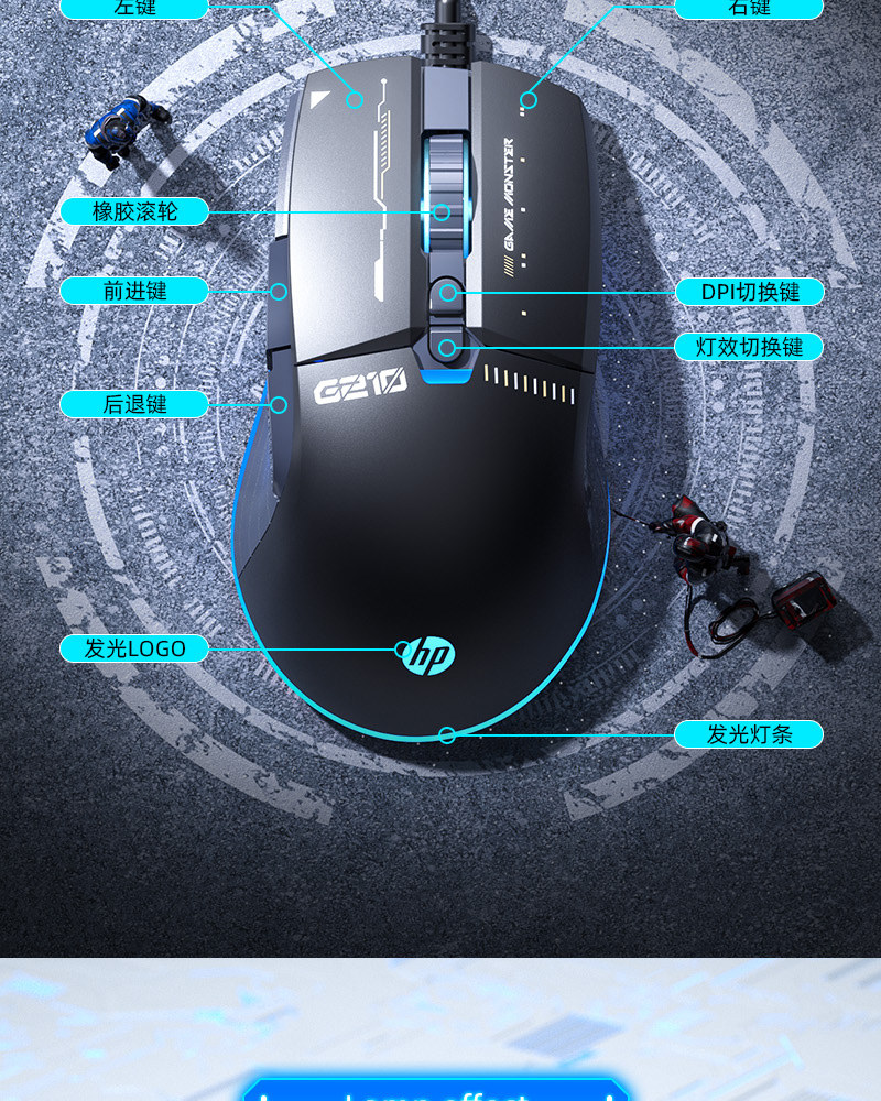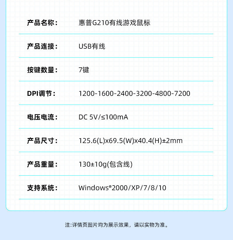 商品名称:惠普【G210黑色】7键宏定义编程 游戏鼠标 商品编号:ECS020695 品牌:hp/惠普 上架时间:2026-03-18 商品毛重:0克