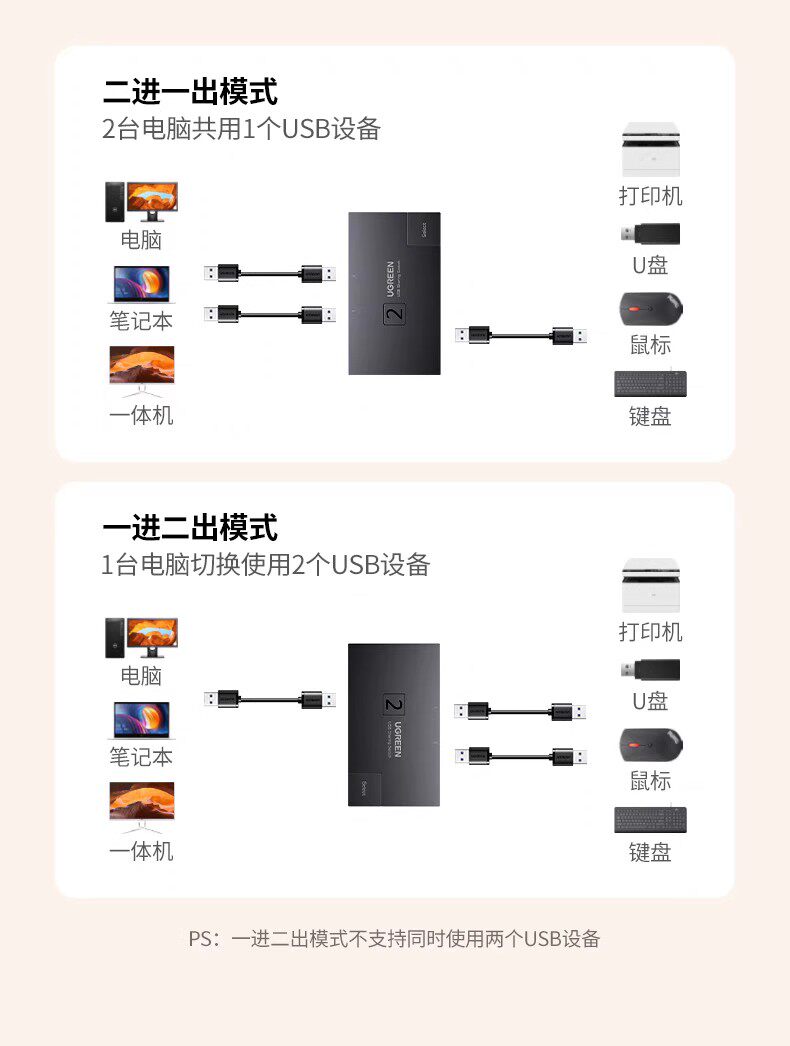 商品名称:绿联 15149 usb切换器二进一出 商品编号:ECS020701 品牌:绿联 上架时间:2026-03-19 商品毛重:0克