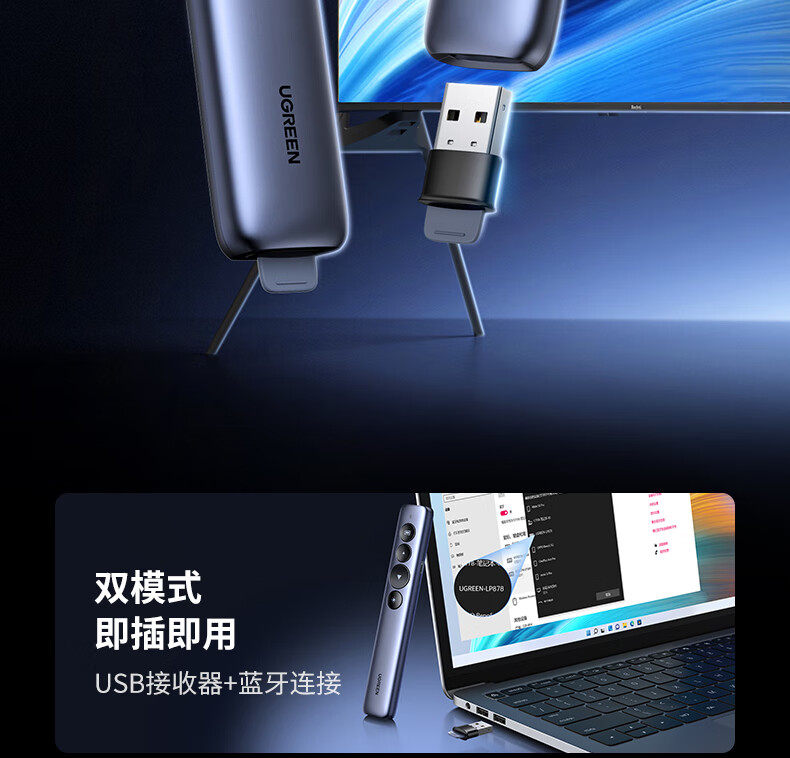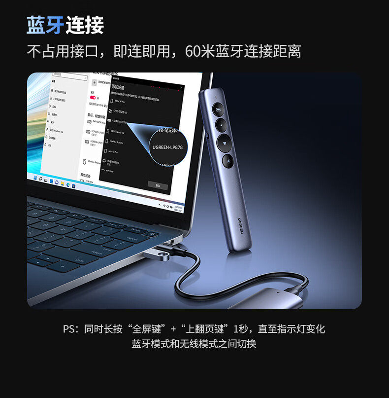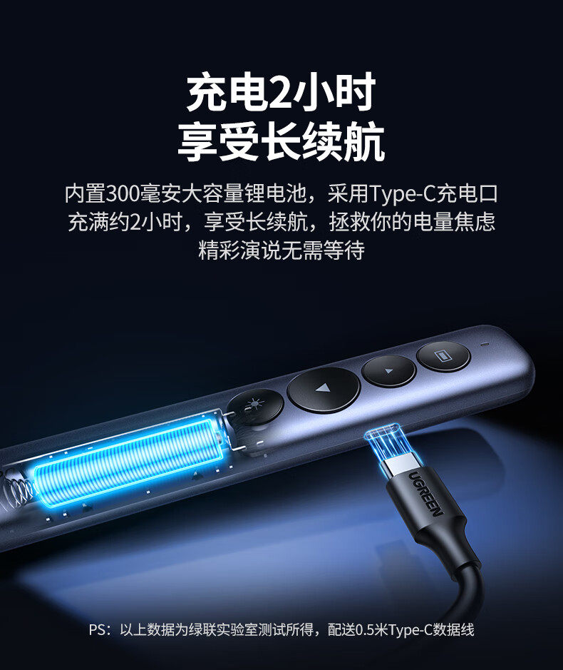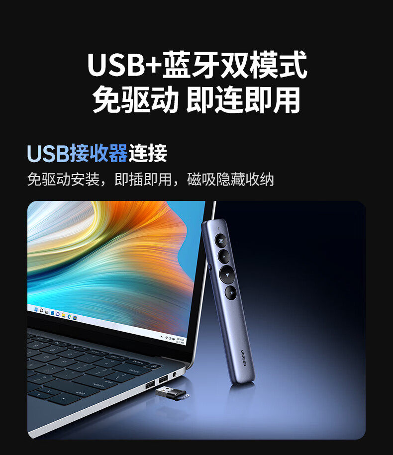 商品名称:绿联45489激光翻页笔绿光款星云灰充电款 商品编号:ECS020724 品牌:绿联 上架时间:2026-03-20 商品毛重:0克