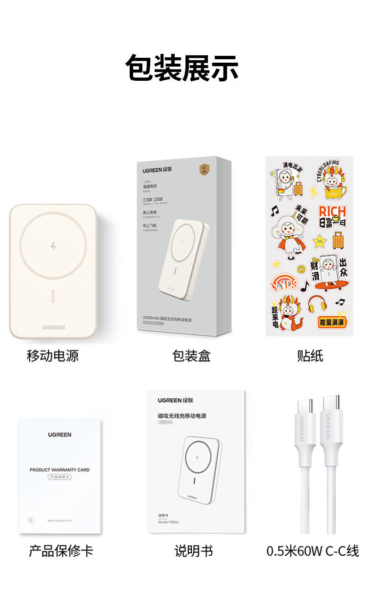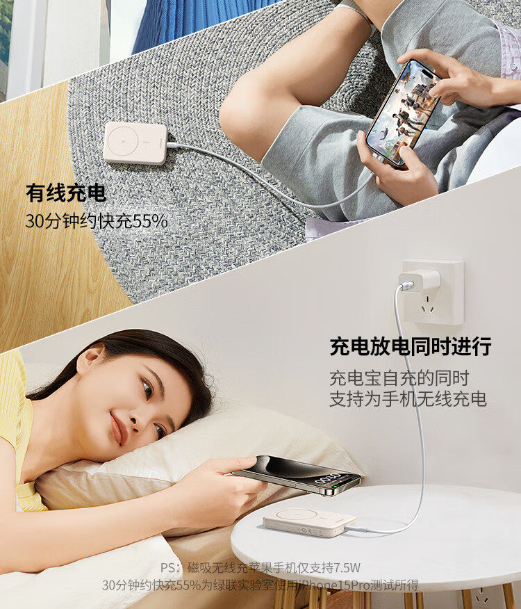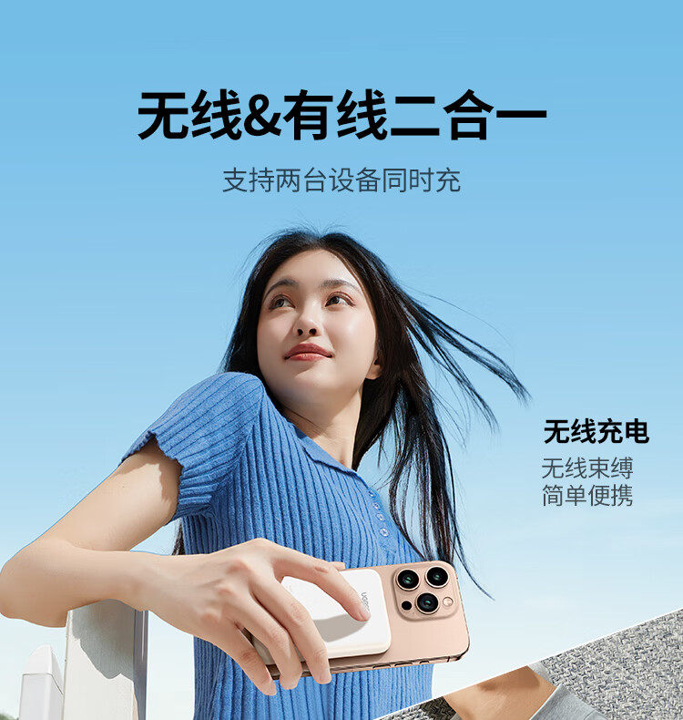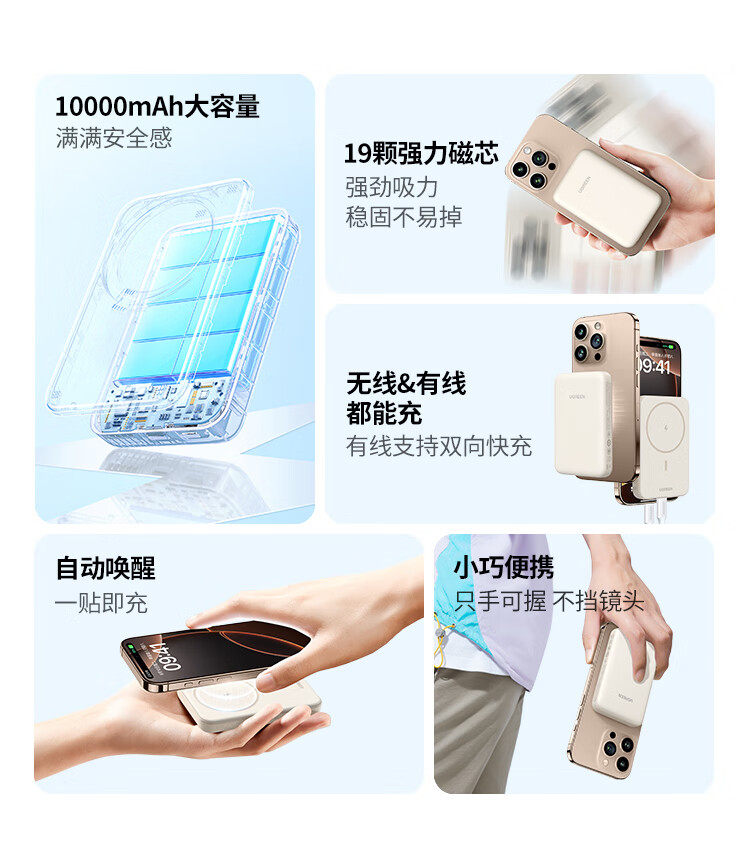 商品名称:绿联25208 10000毫安适用苹果磁吸无线充电宝20W有线双向快充 商品编号:ECS020726 品牌:绿联 上架时间:2026-03-20 商品毛重:0克