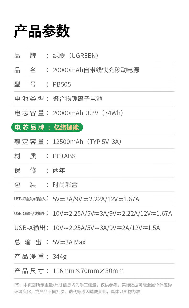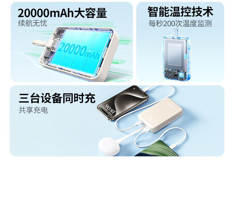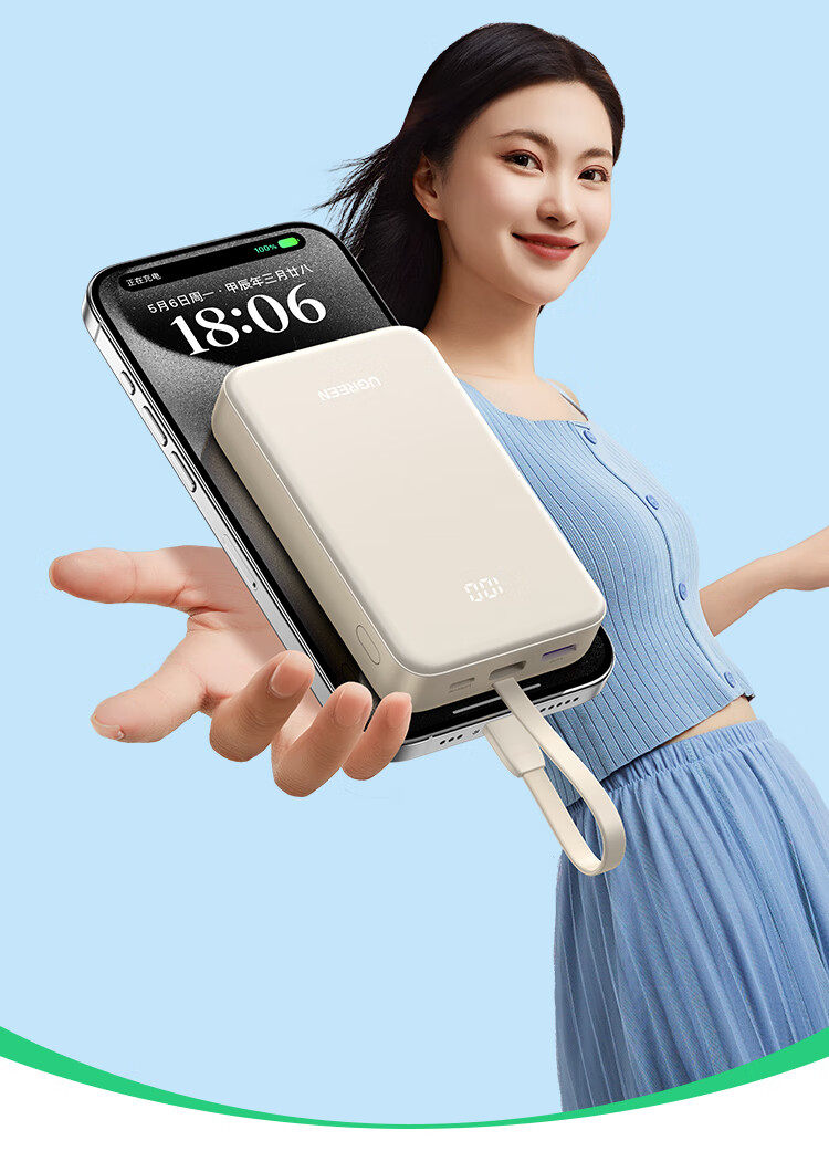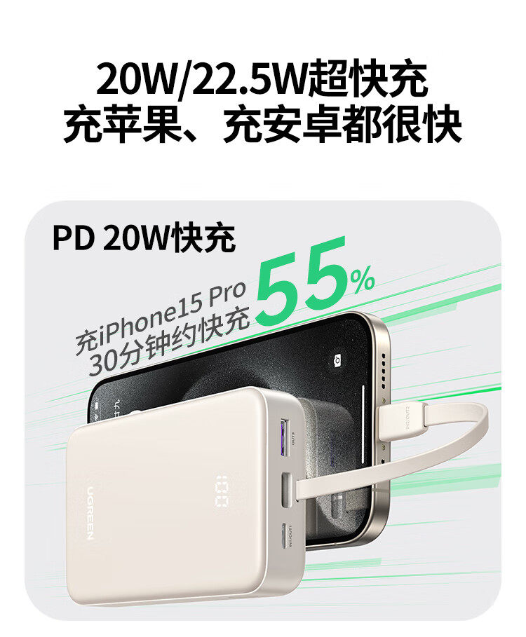 商品名称:绿联35340A-20000mAh移动电源带c线奶白色/自带线 商品编号:ECS020729 品牌:绿联 上架时间:2026-03-20 商品毛重:0克