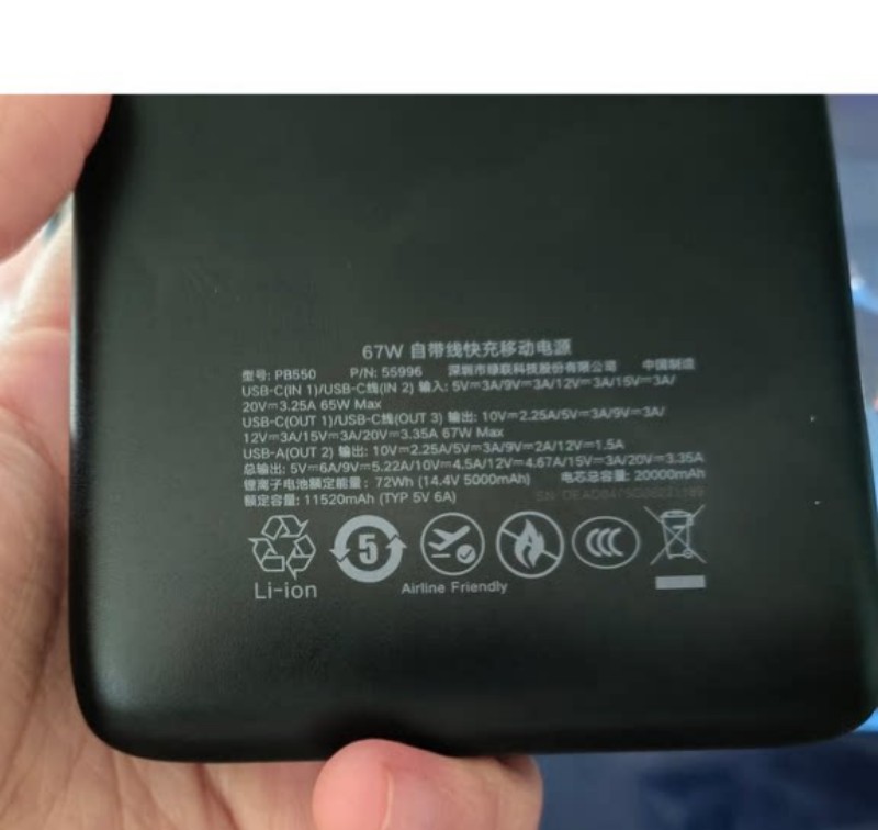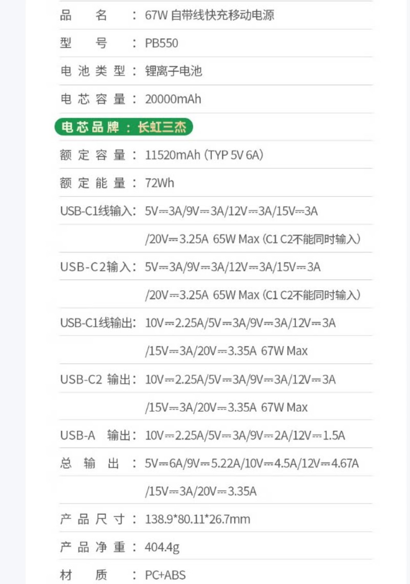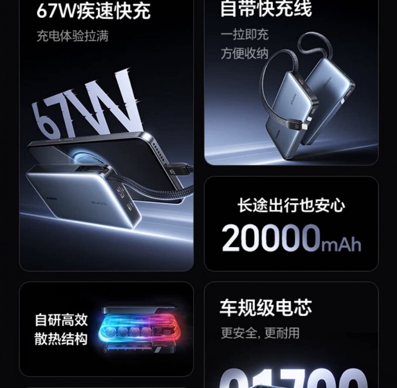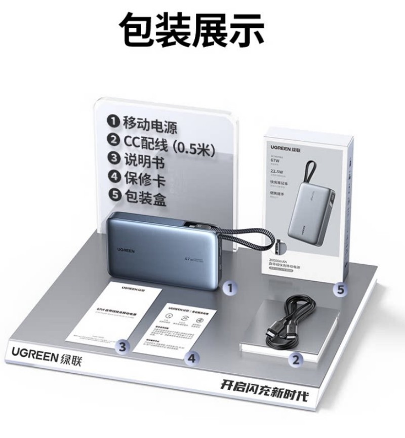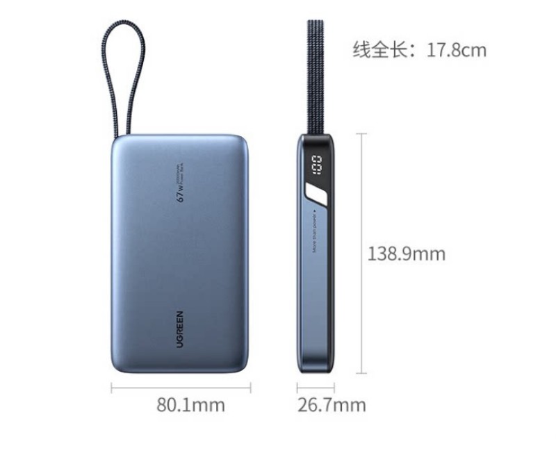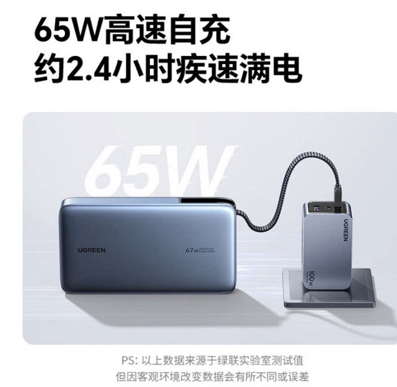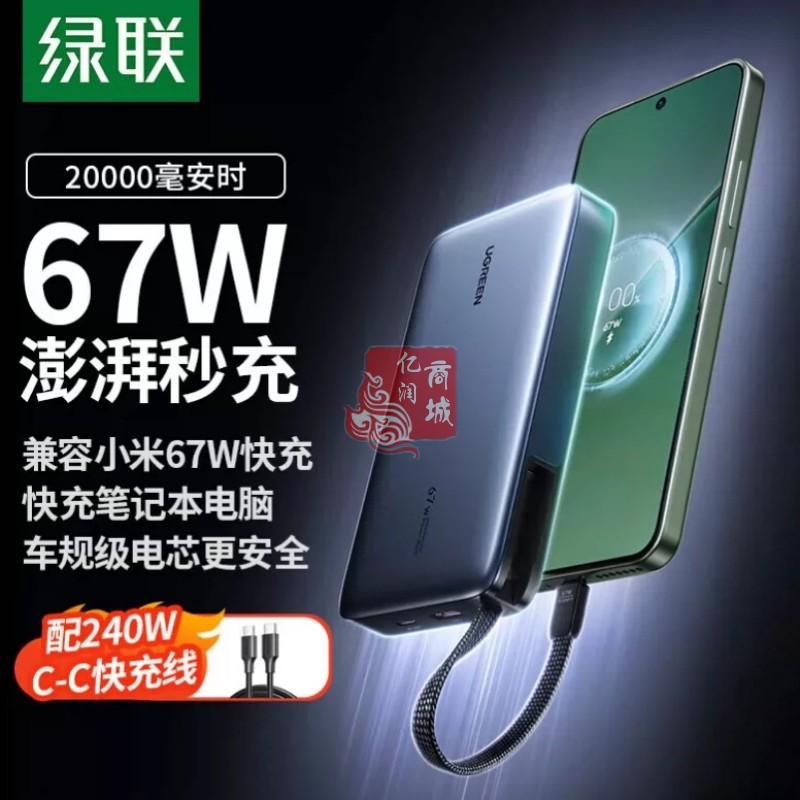 商品名称:绿联55996 67W充电宝自带线 20000毫安移动电源 商品编号:ECS020734 品牌:绿联 上架时间:2026-03-20 商品毛重:0克