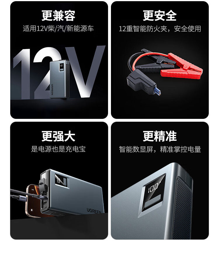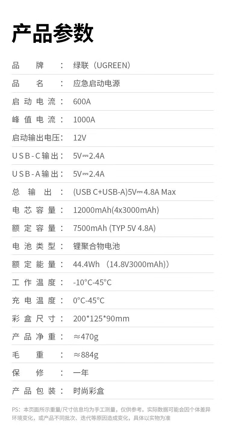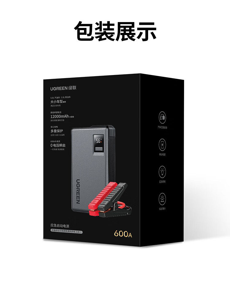 商品名称:绿联35977汽车应急启动电源12000毫安汽油车打火通用 商品编号:ECS020737 品牌:绿联 上架时间:2026-03-20 商品毛重:0克