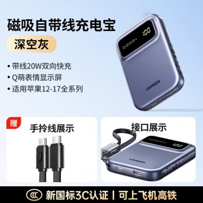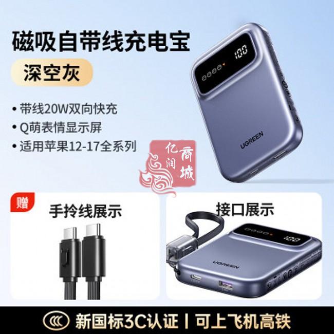 商品名称:绿联65380 磁吸无线充电宝20W移动电源10000毫安灰色 商品编号:ECS020742 品牌:绿联 上架时间:2026-03-20 商品毛重:0克