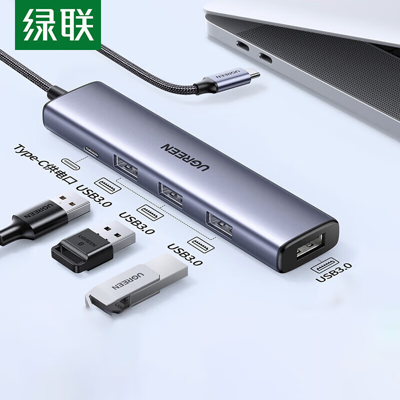 商品名称:绿联 20841 Type-C转USB3.0*4HUB转换器 商品编号:ECS020752 品牌:绿联 上架时间:2026-03-23 商品毛重:0克