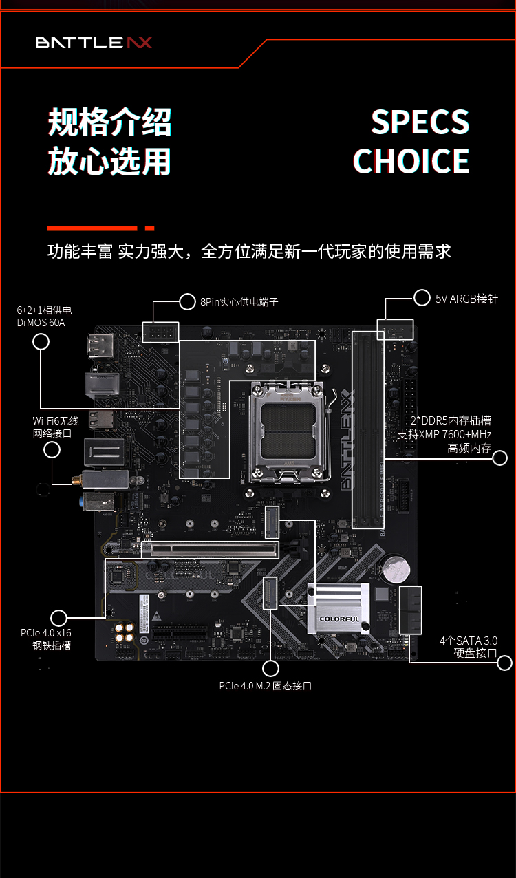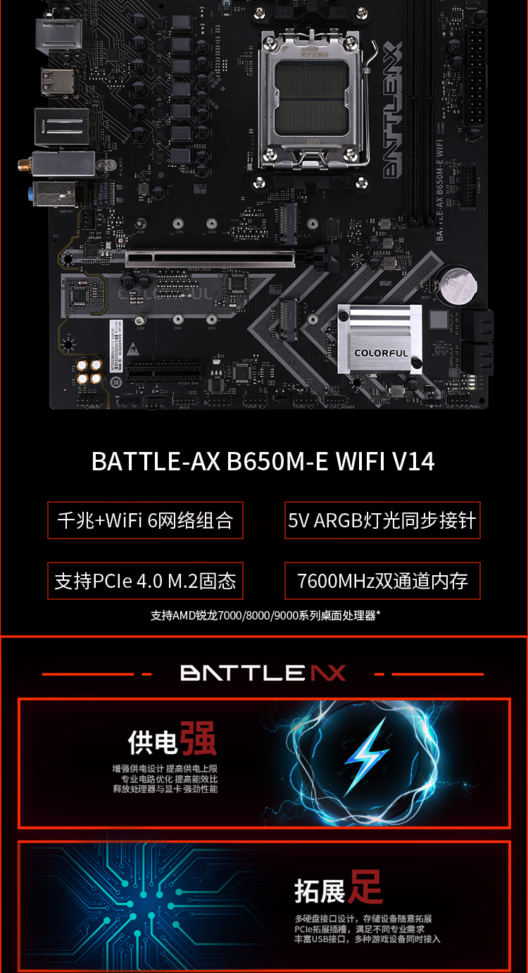 商品名称:七彩虹BATTLE-AX B650M-E WIFI V14 主板 商品编号:ECS020760 品牌:七彩虹 上架时间:2026-03-23 商品毛重:0克