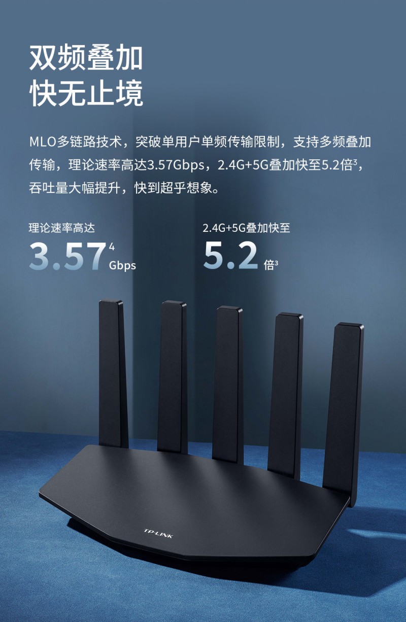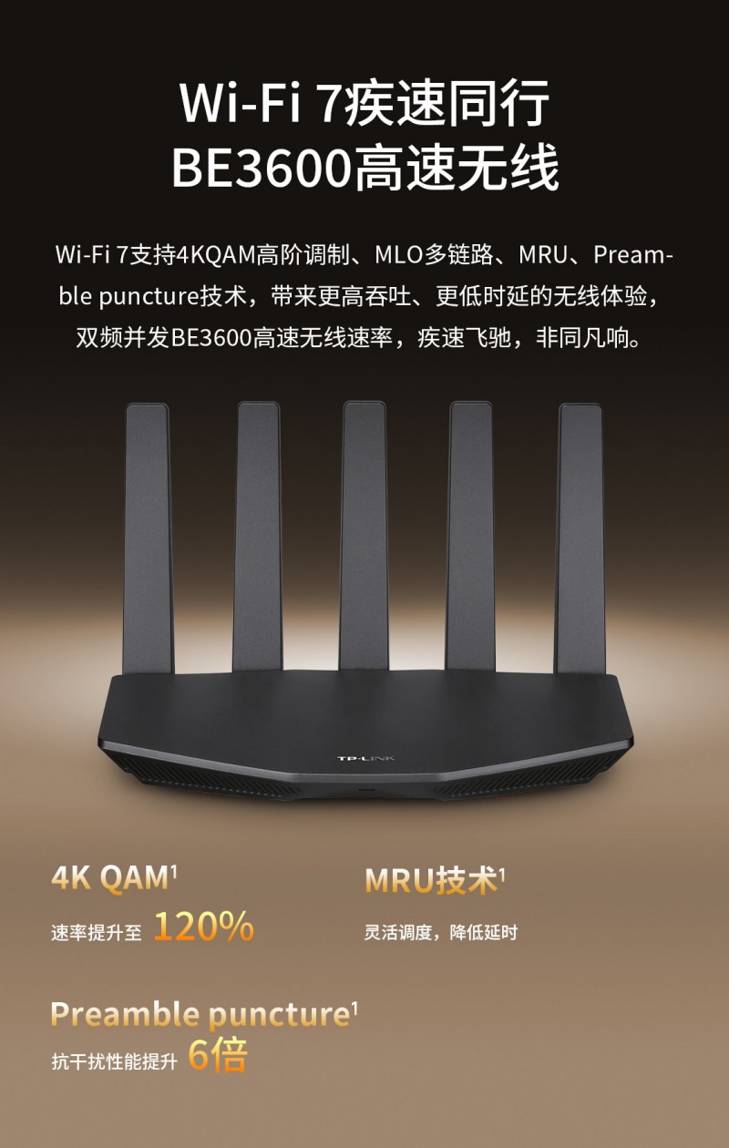 商品名称:TP-LINK TL-7DR3630 千兆5天线 双频WiFi7路由器 商品编号:ECS020771 品牌:TP-LINK 上架时间:2026-03-23 商品毛重:0克