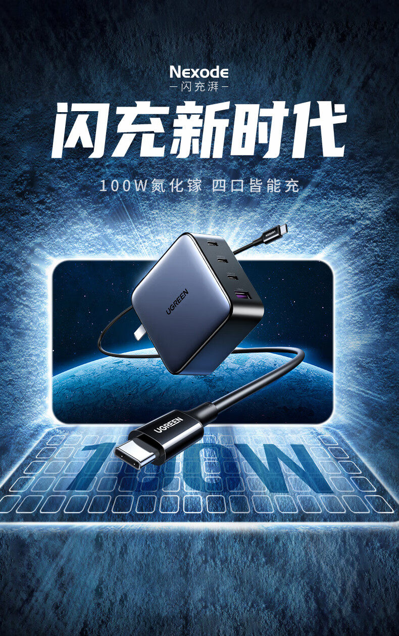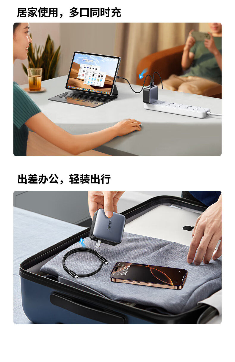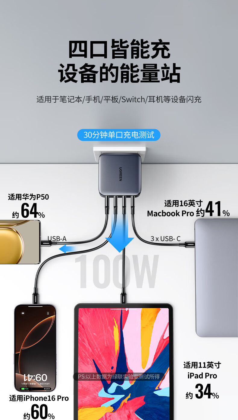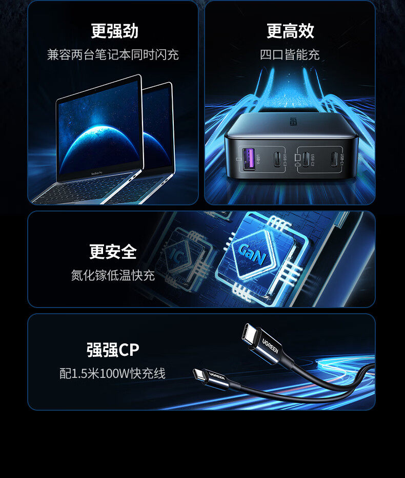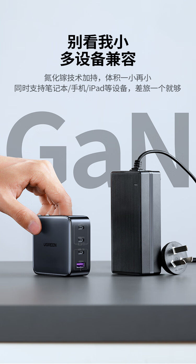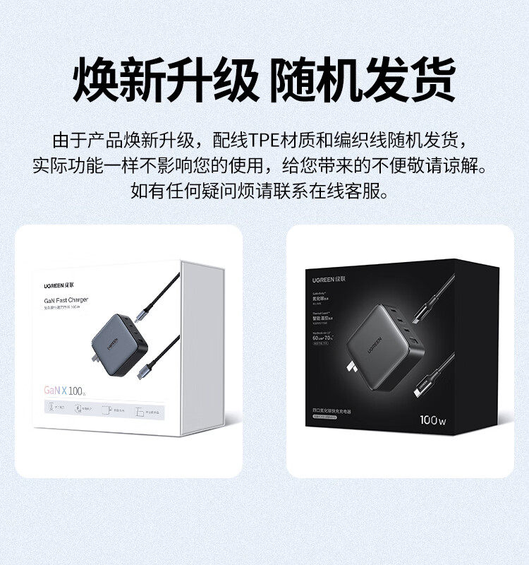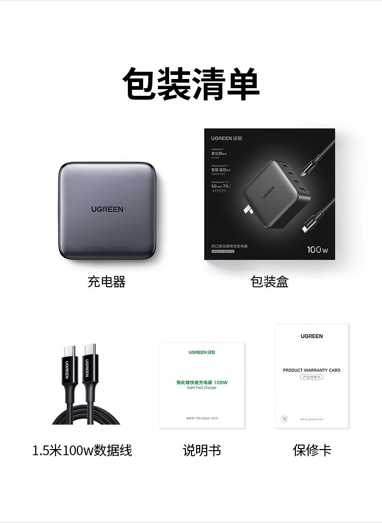 商品名称:绿联10375氮化镓快速充电器100W套装 商品编号:ECS020773 品牌:绿联 上架时间:2026-03-23 商品毛重:0克