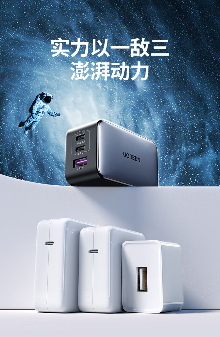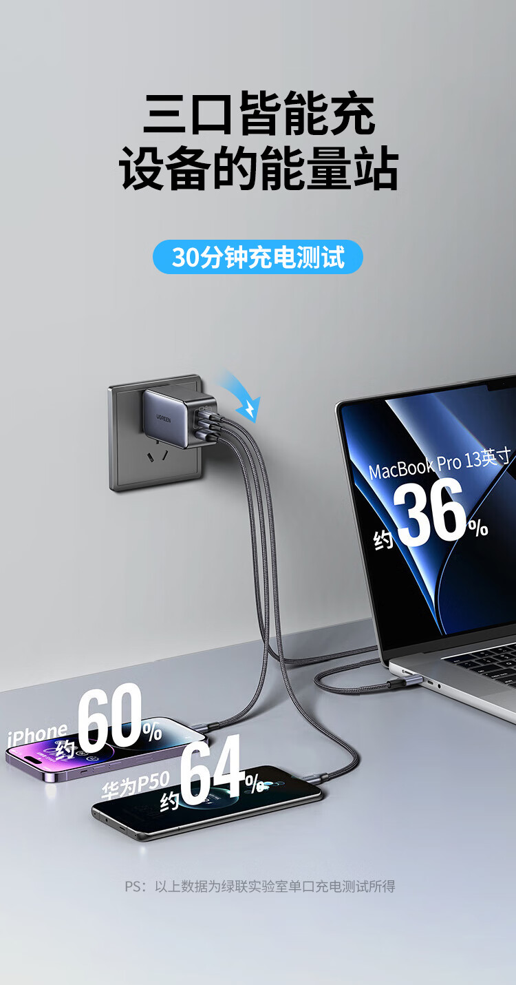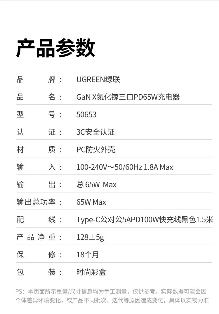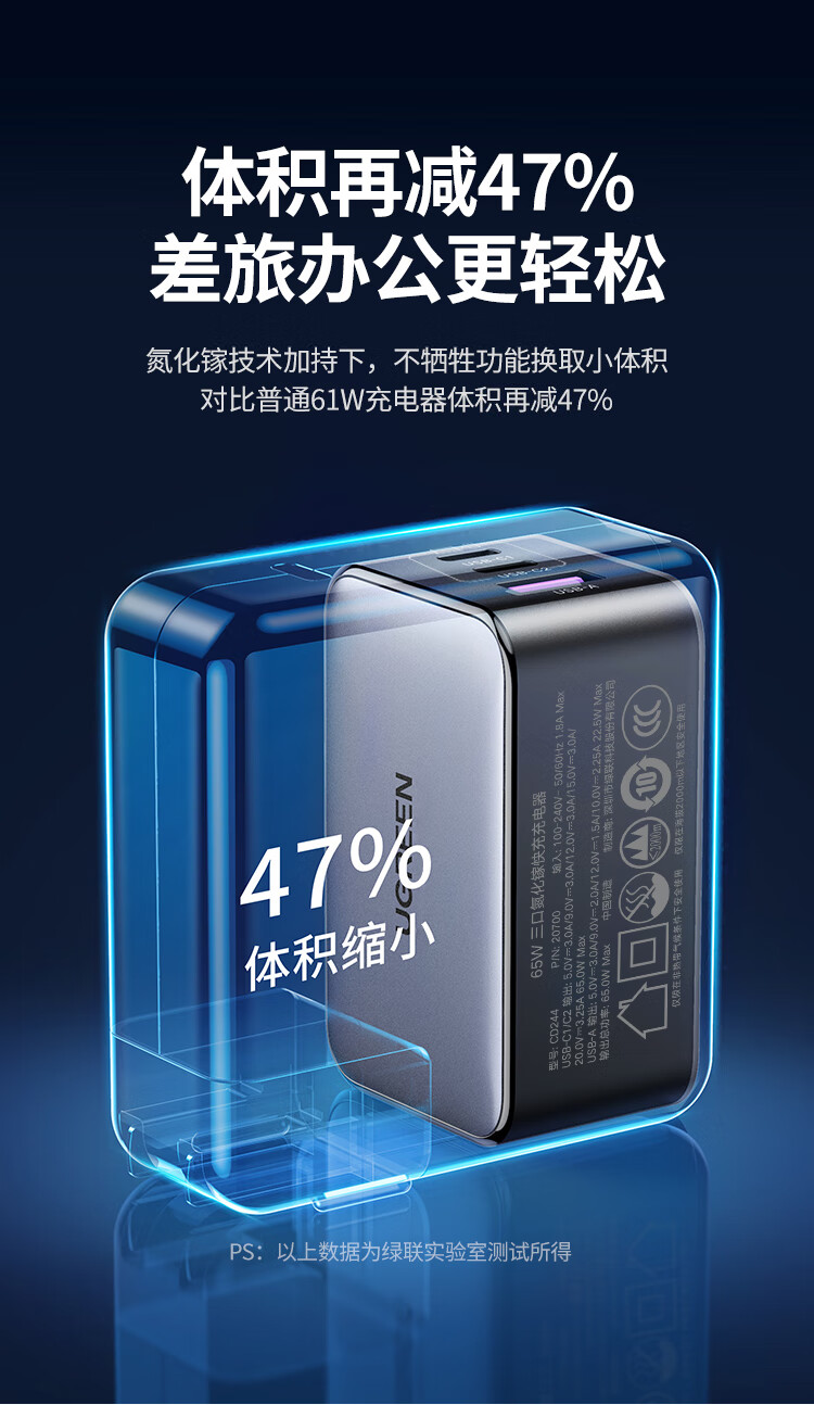 商品名称:绿联20700 氮化镓65W适用PD20W苹果15/14手机笔记本电脑充电头 商品编号:ECS020776 品牌:绿联 上架时间:2026-03-24 商品毛重:0克