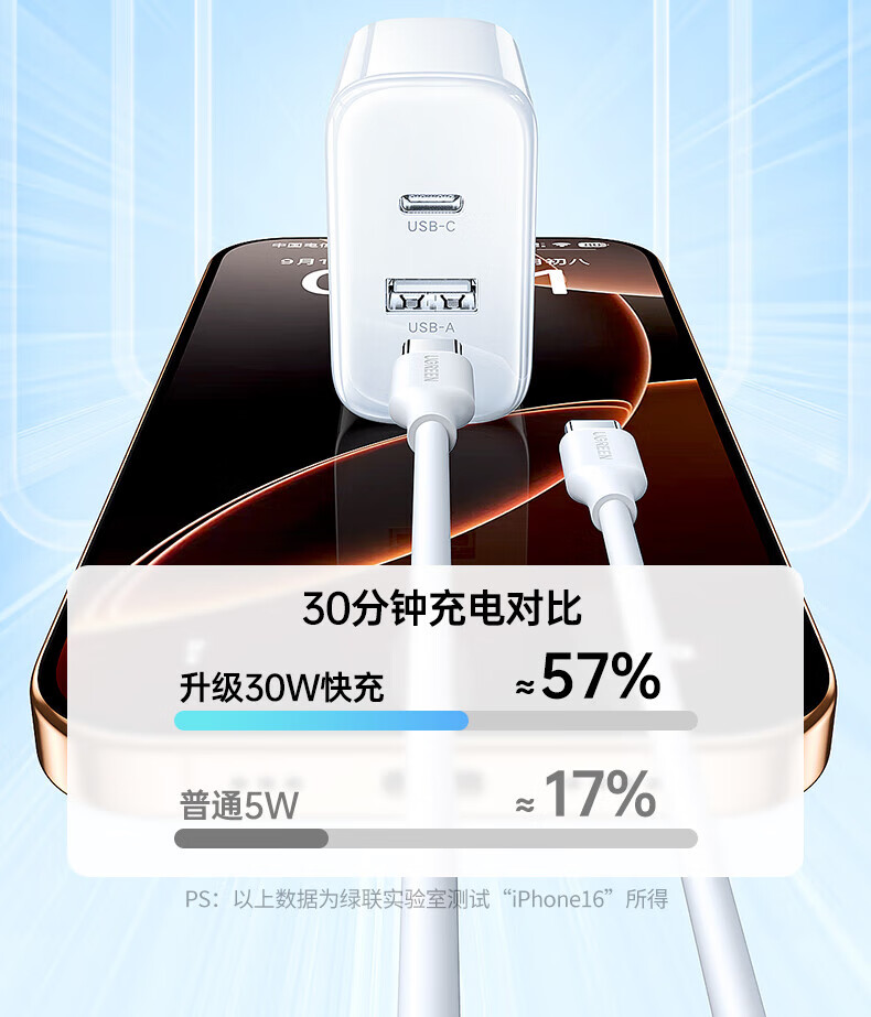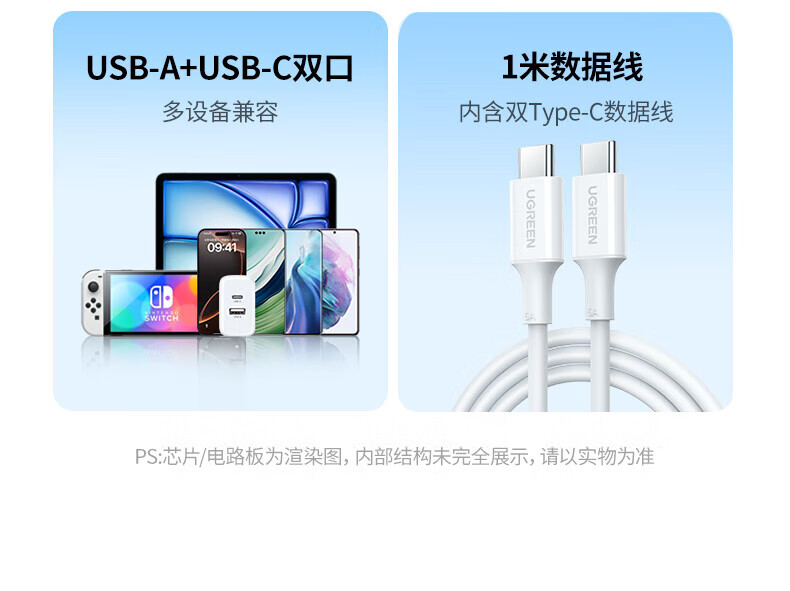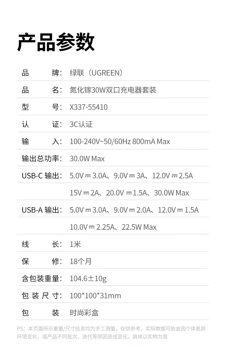 商品名称:绿联 55410 20w双口type-c-USB适用苹果16充电器头i 商品编号:ECS020782 品牌:绿联 上架时间:2026-03-24 商品毛重:0克
