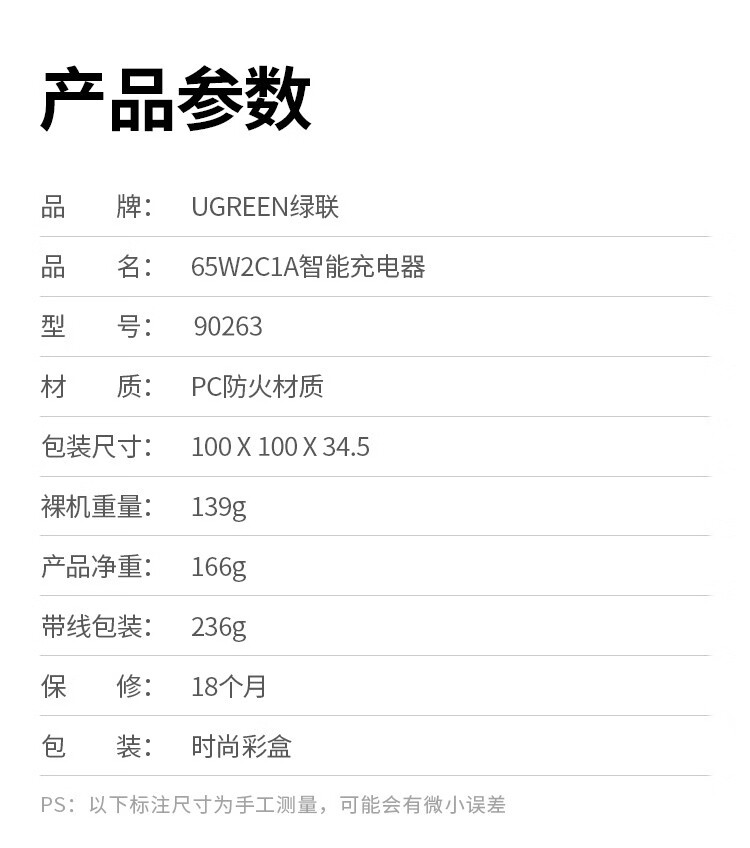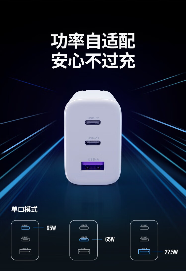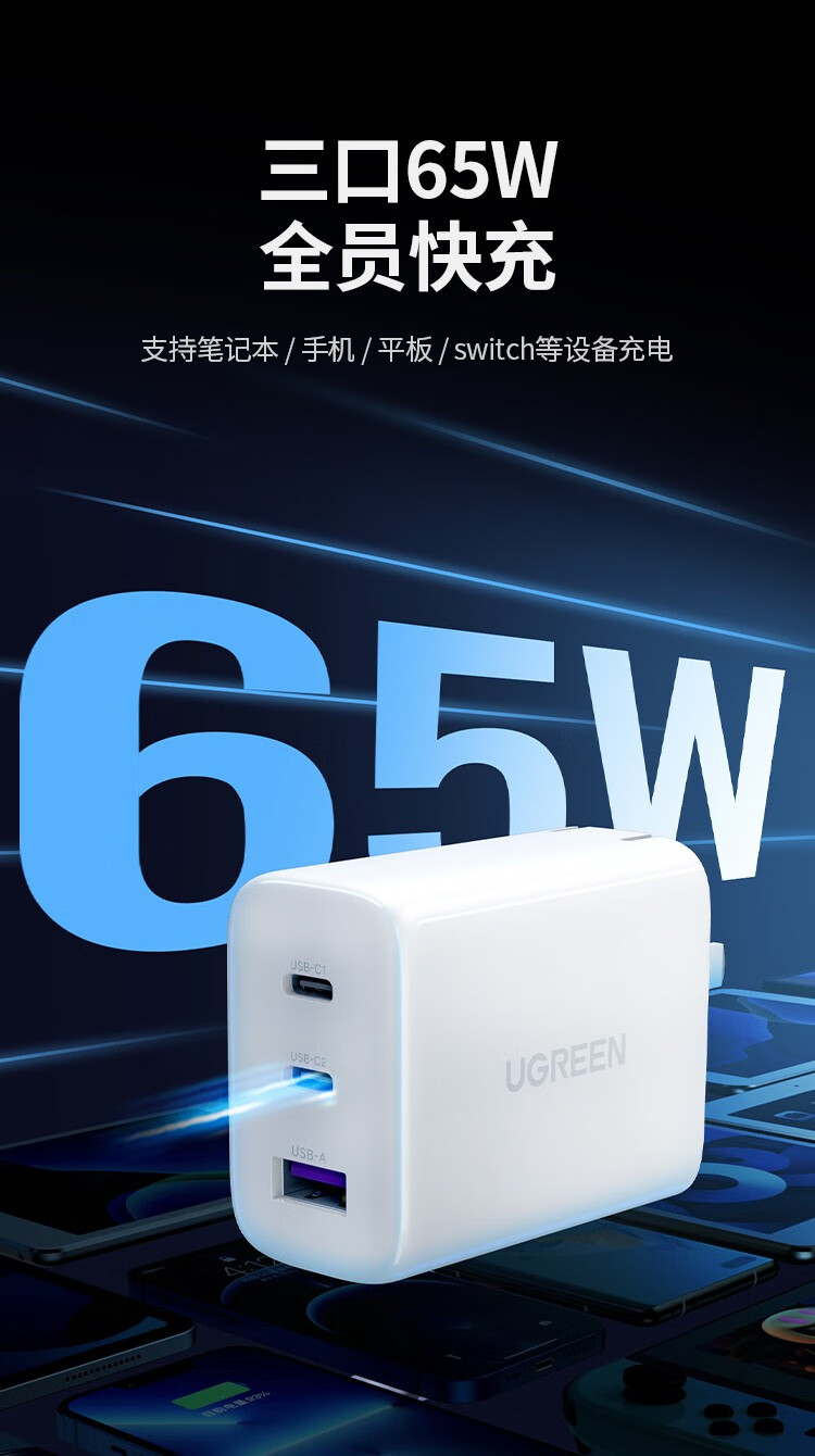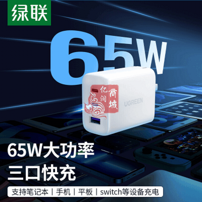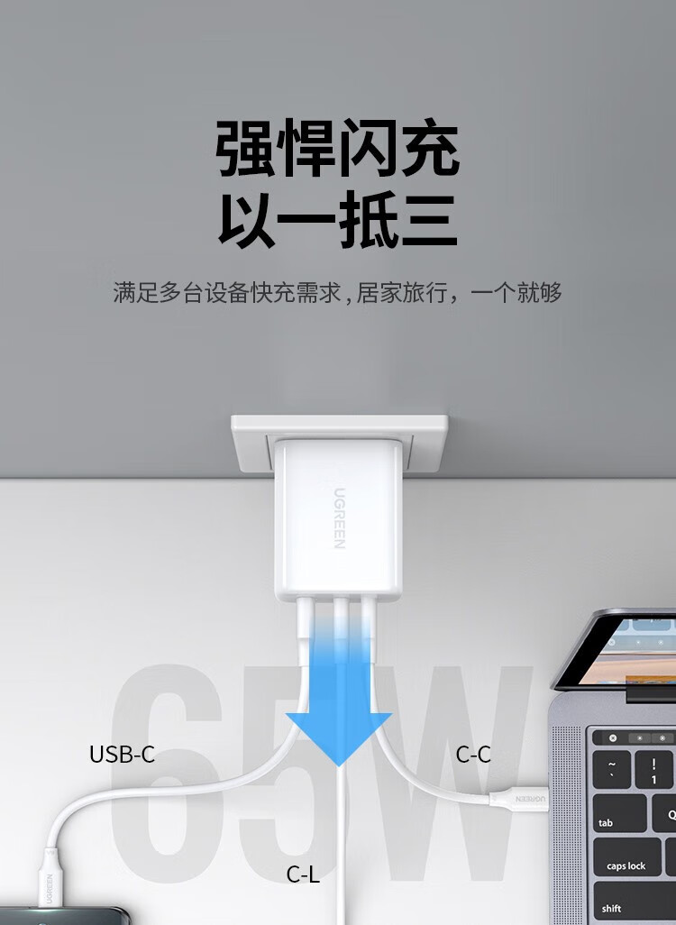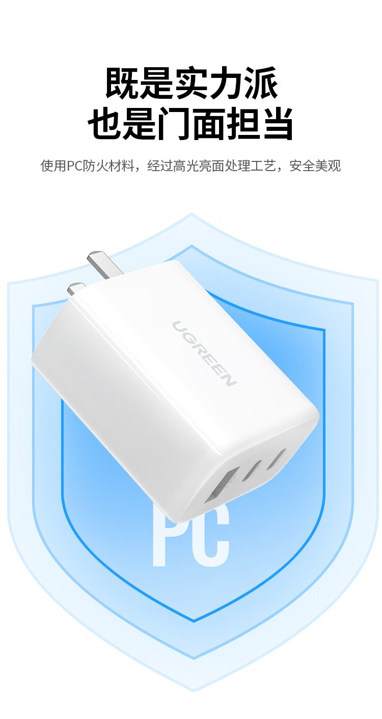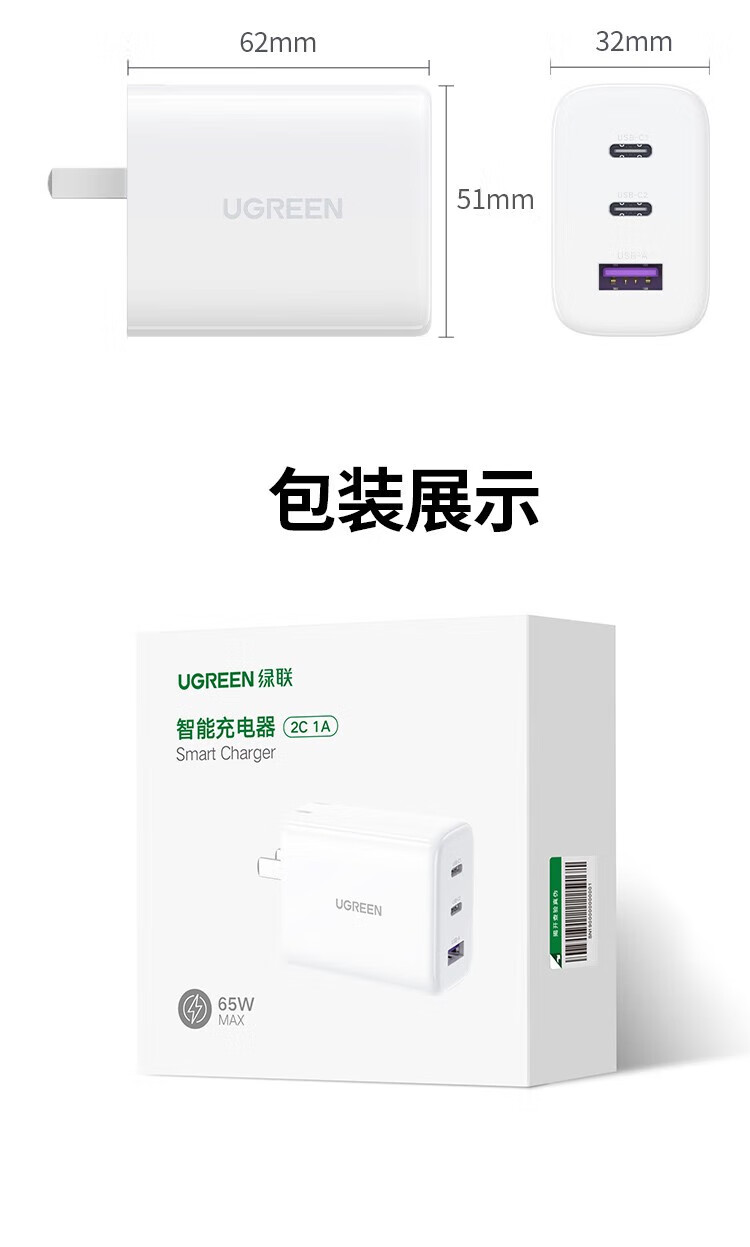 商品名称:绿联90263 type-c-usb充电器PD65W多口快充头 商品编号:ECS020784 品牌:绿联 上架时间:2026-03-24 商品毛重:0克