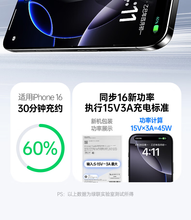 商品名称:绿联 65230绿联45W氮化镓充电器 Type-C快充套装 商品编号:ECS020787 品牌:绿联 上架时间:2026-03-24 商品毛重:0克